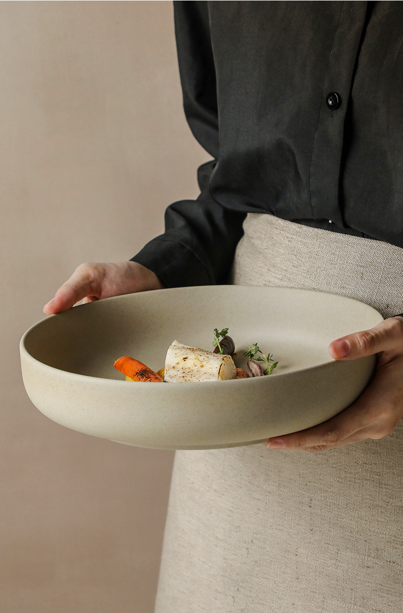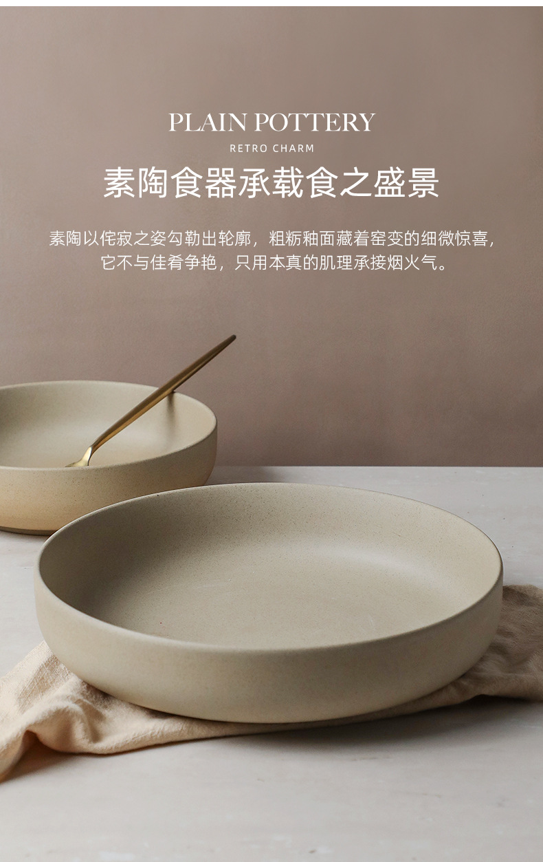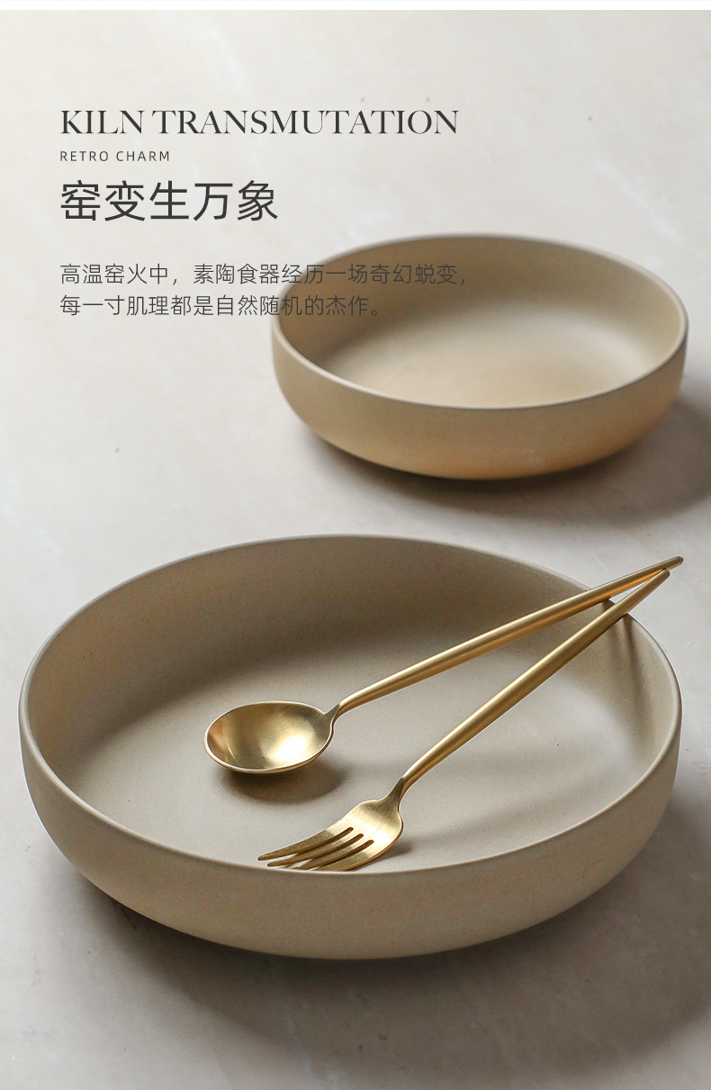 复古诧寂风日式陶瓷碗浅碗菜碗西餐水果沙拉深盘大号汤碗粗陶餐具