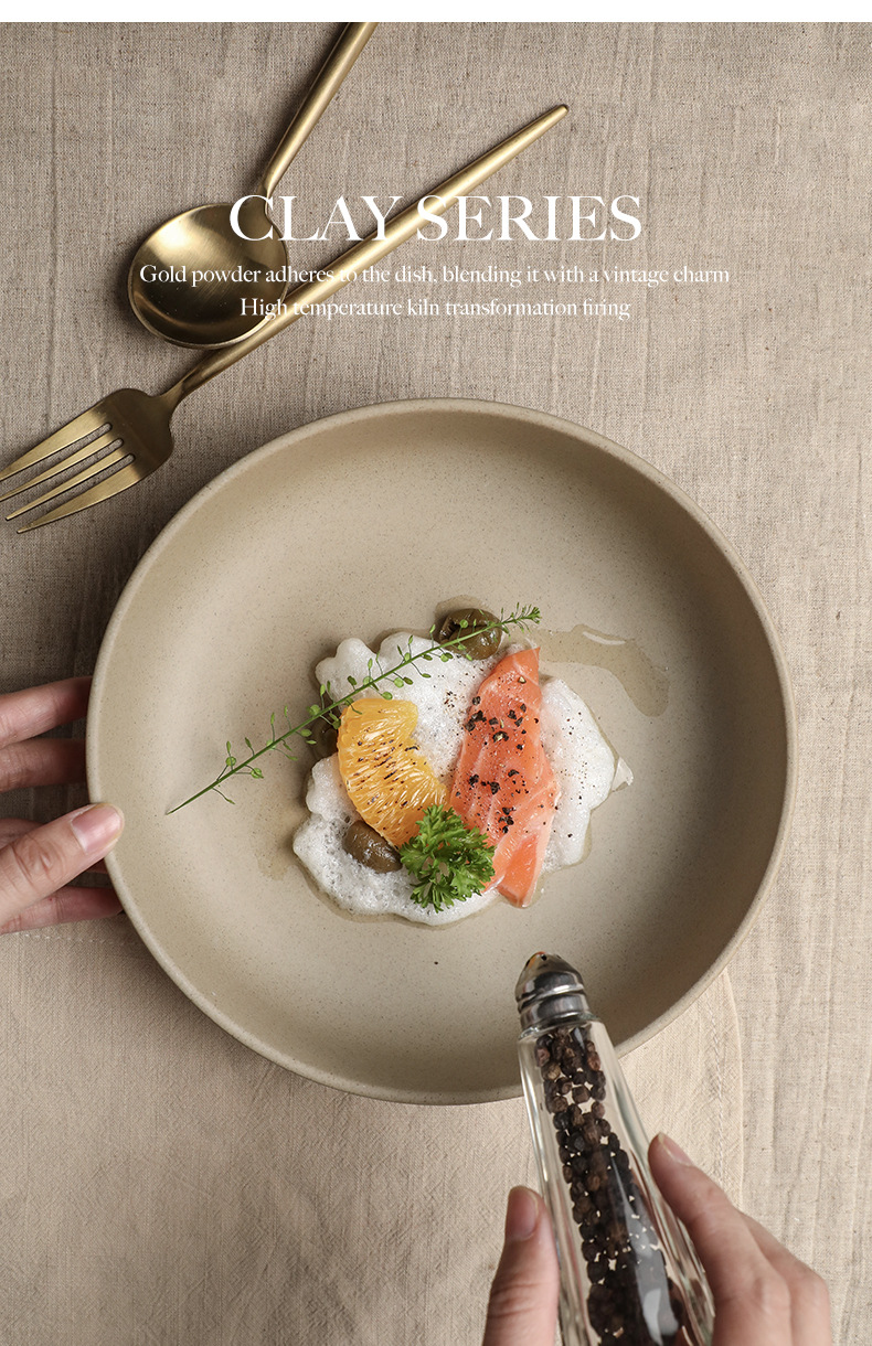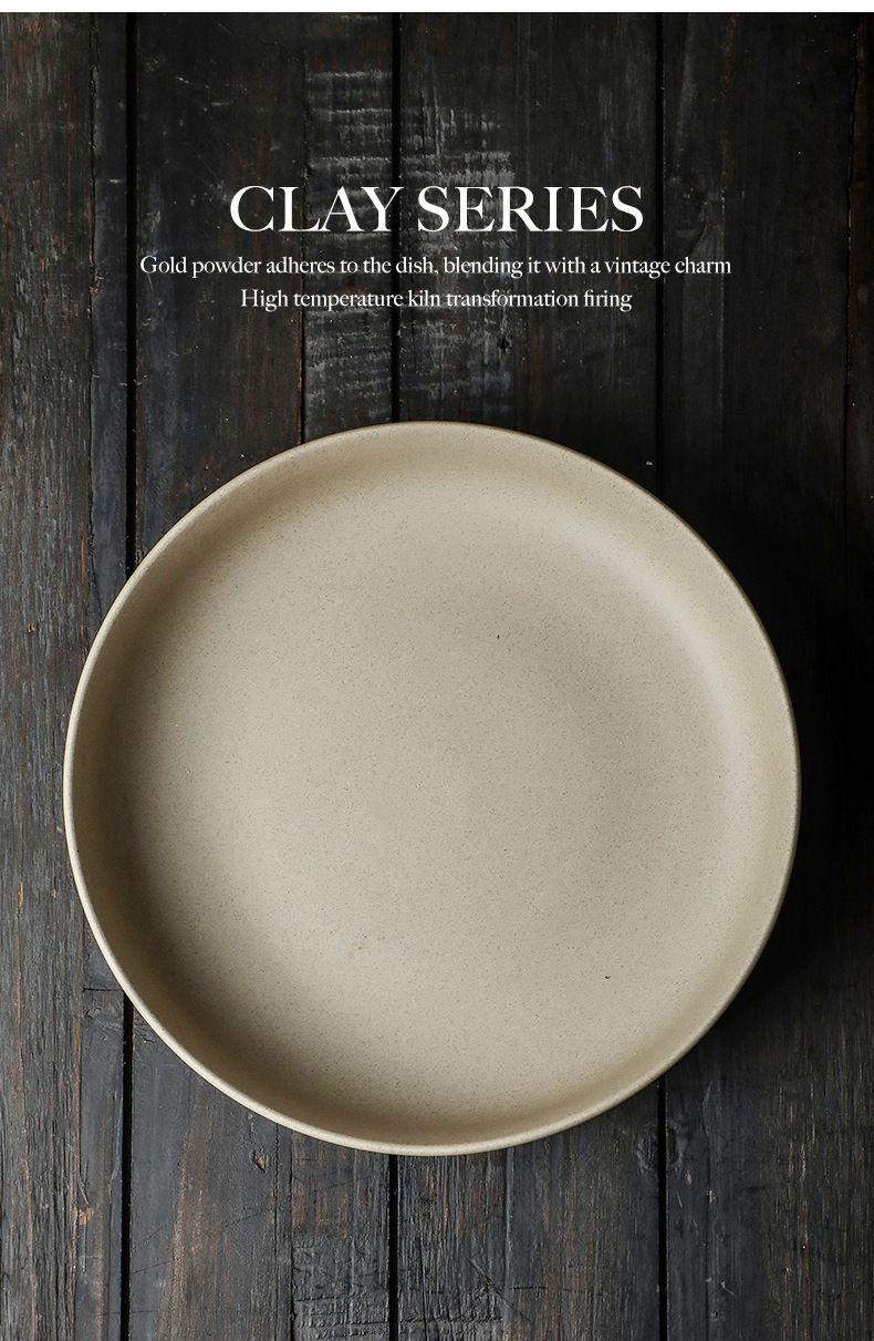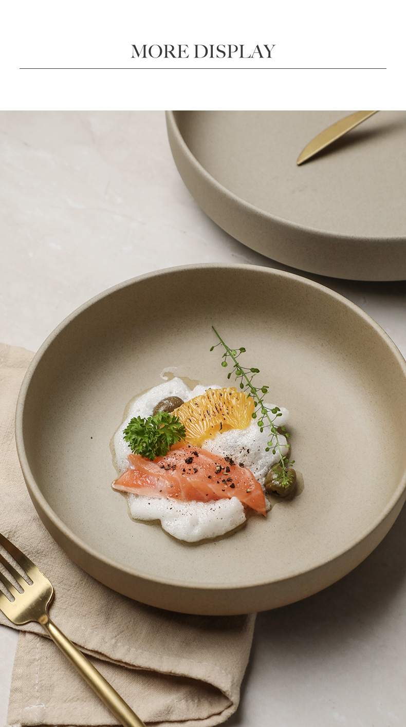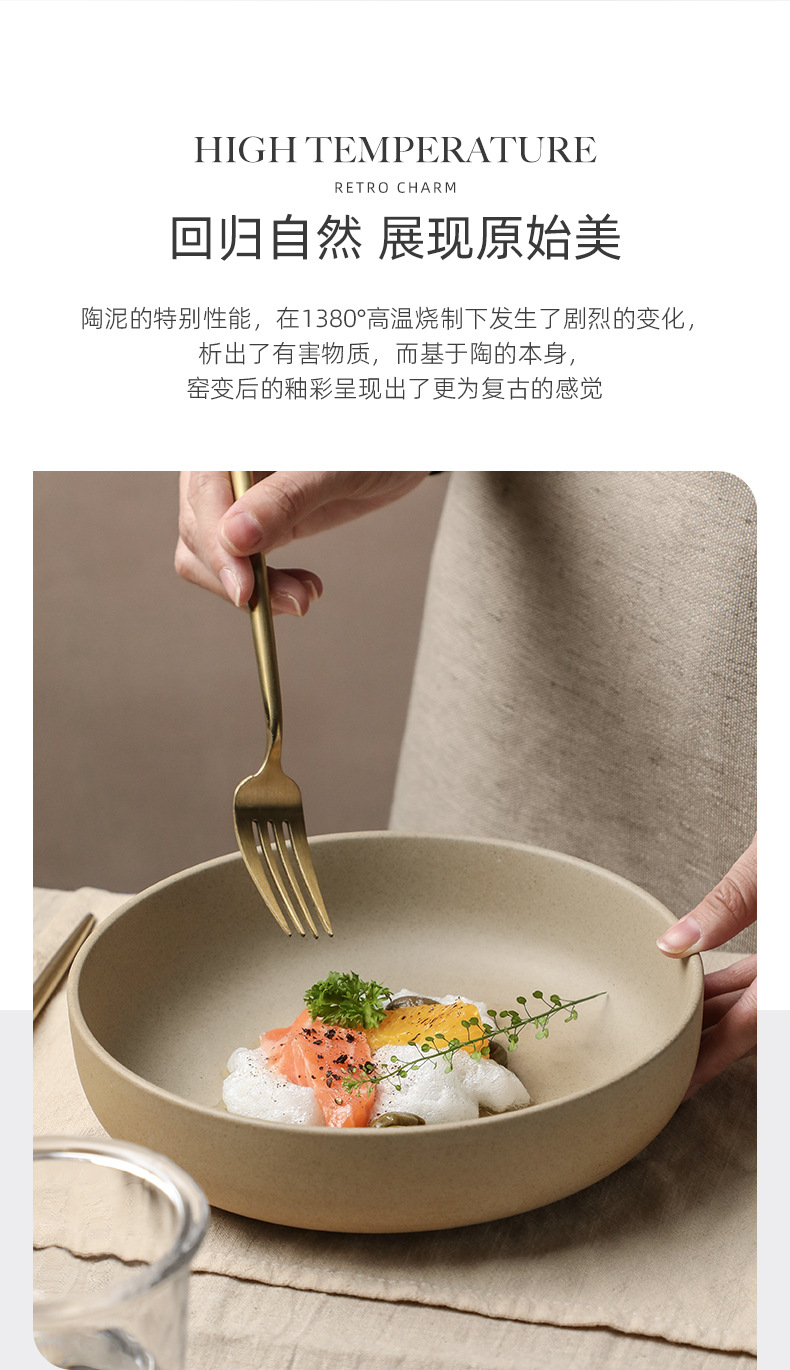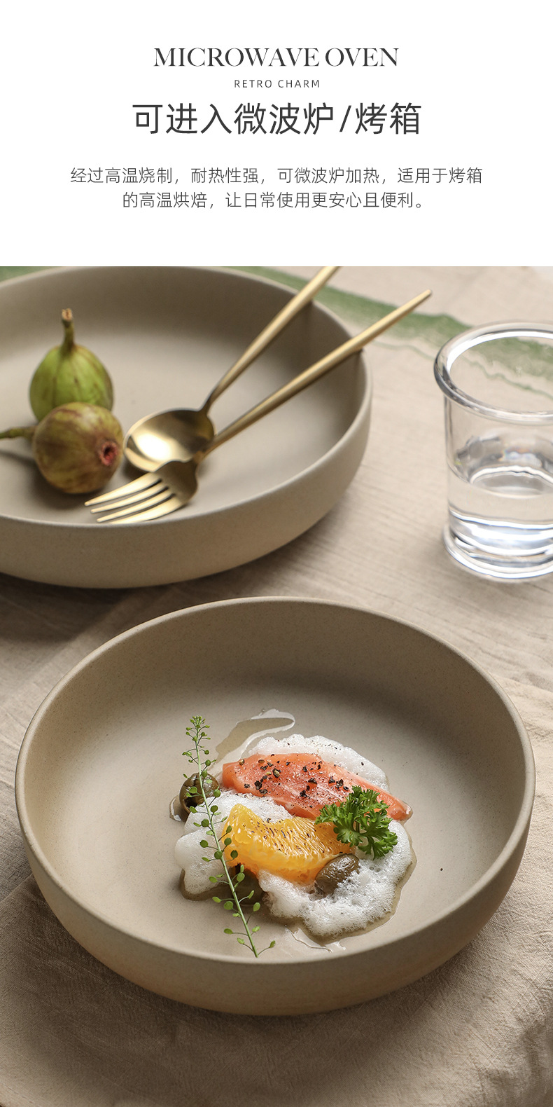 日式复古陶瓷深盘冷菜盘圆盘小众粗陶个性餐厅餐具浅汤碗电商批发
