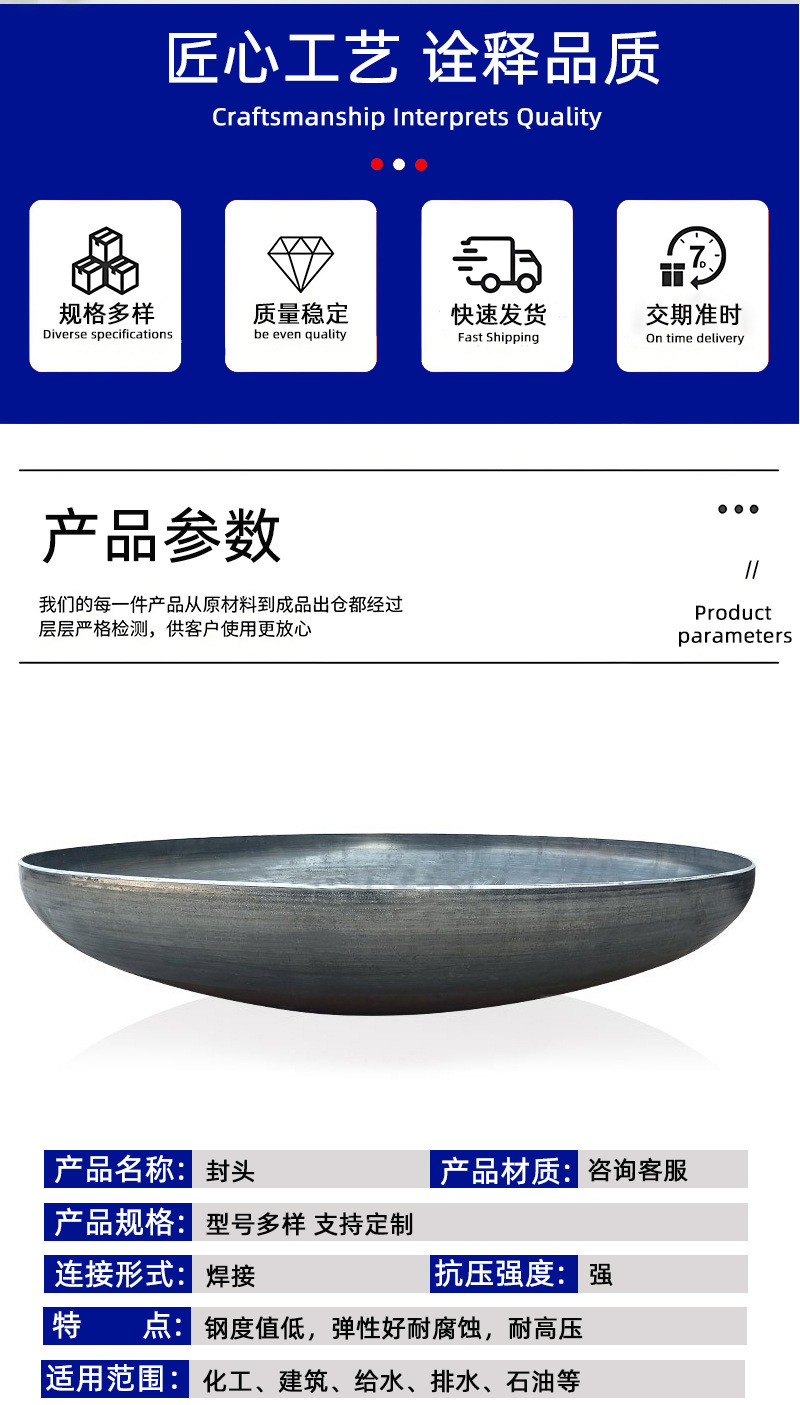 蝶形溶接パイプキャップ下水処理プラントボイラー溶接プラグ小口径薄肉ステンレス鋼楕円形ヘッド