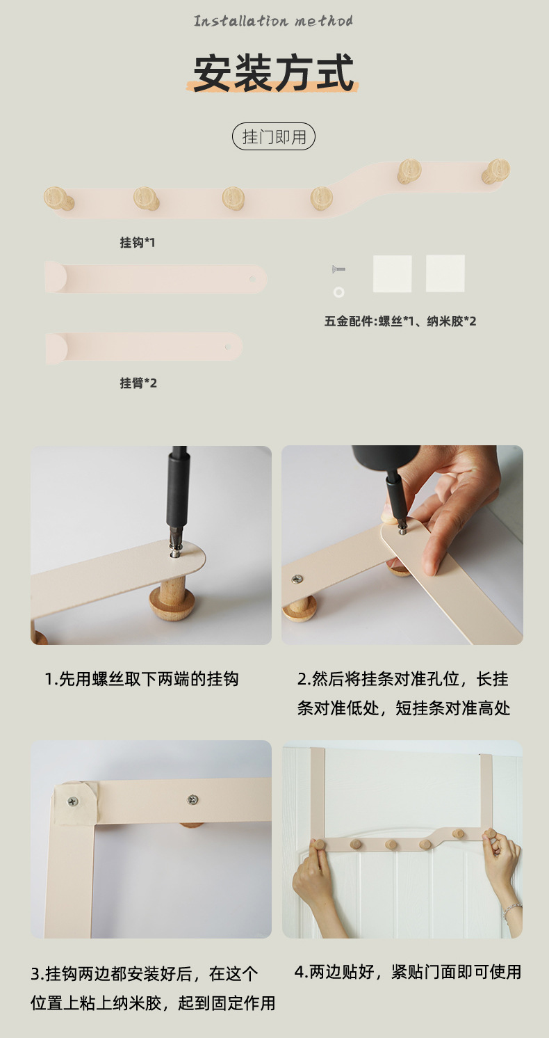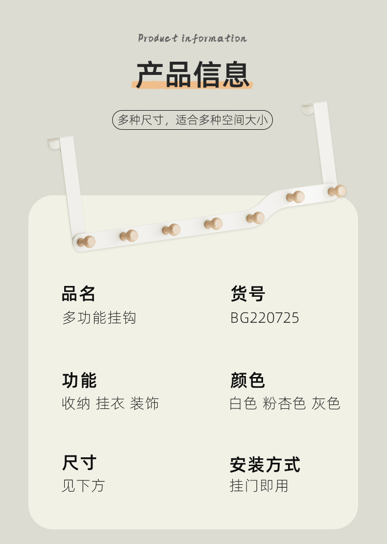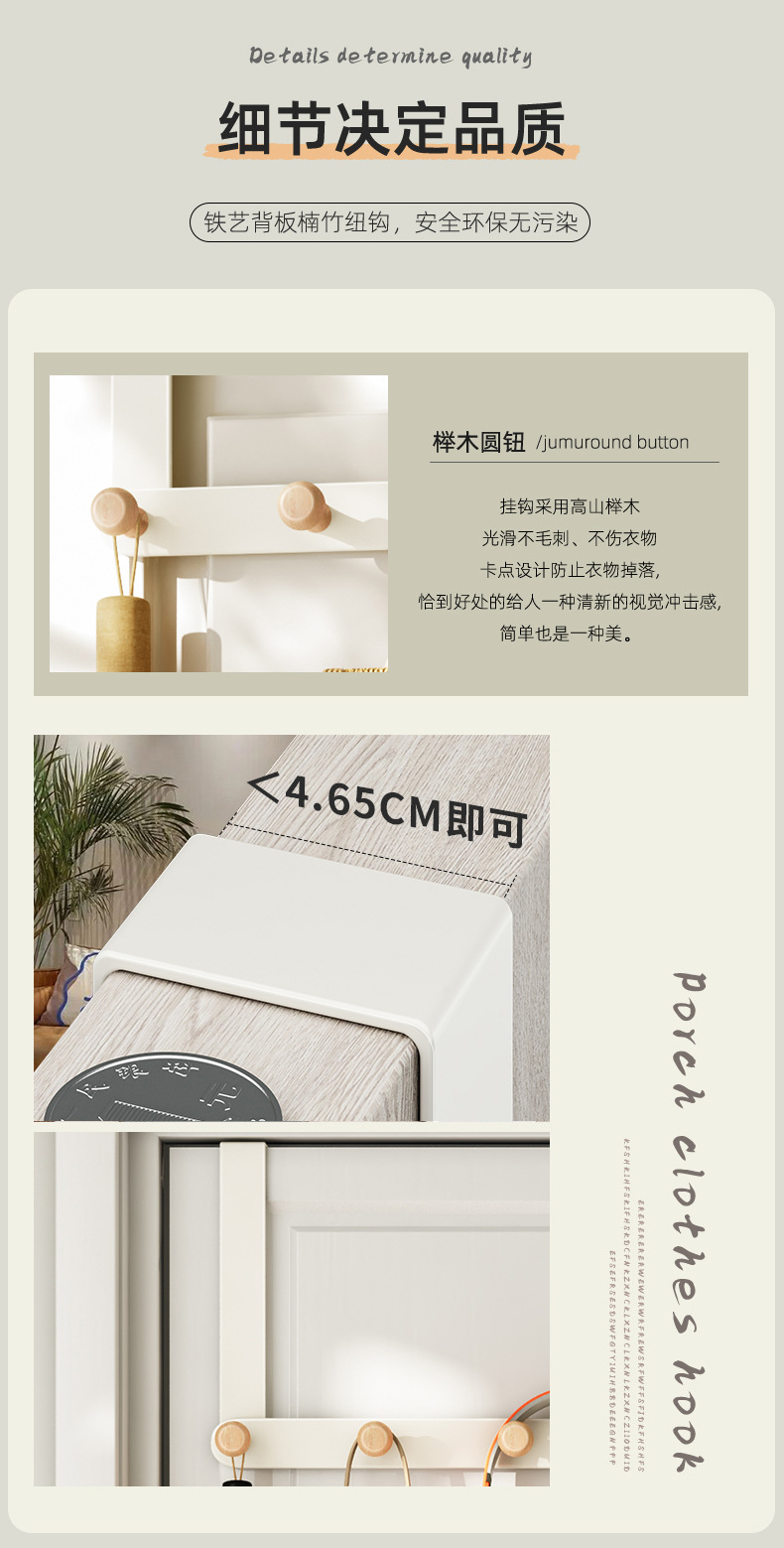 产品信息:主体的材质为铁艺,烤漆喷涂,挂钩部分为榉木