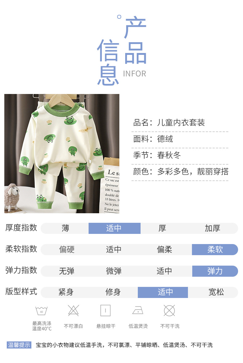 子供用保温下着セットにベルベットをつけて、男の子と女の子の秋冬に下着を厚くして、乳幼児の家庭服のパジャマを厚くします