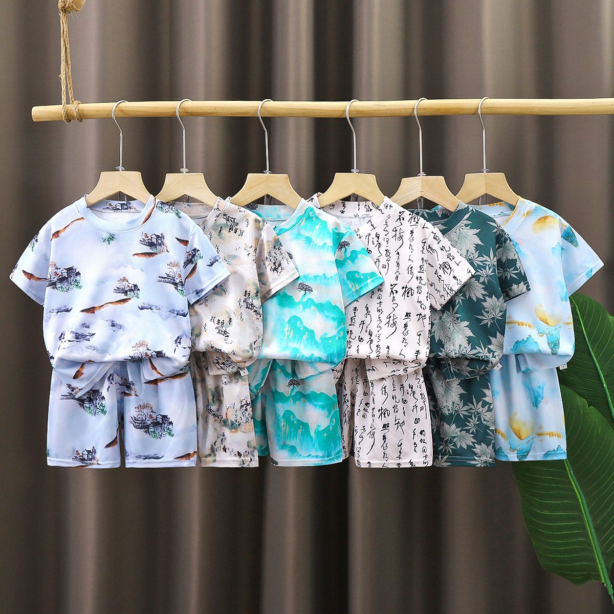 子供用半袖セット夏の新型赤ちゃんプリント半袖半ズボン2点セット子供用tシャツ男の子用半ズボン