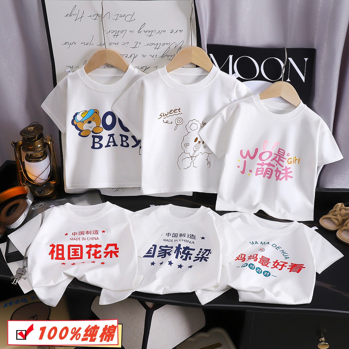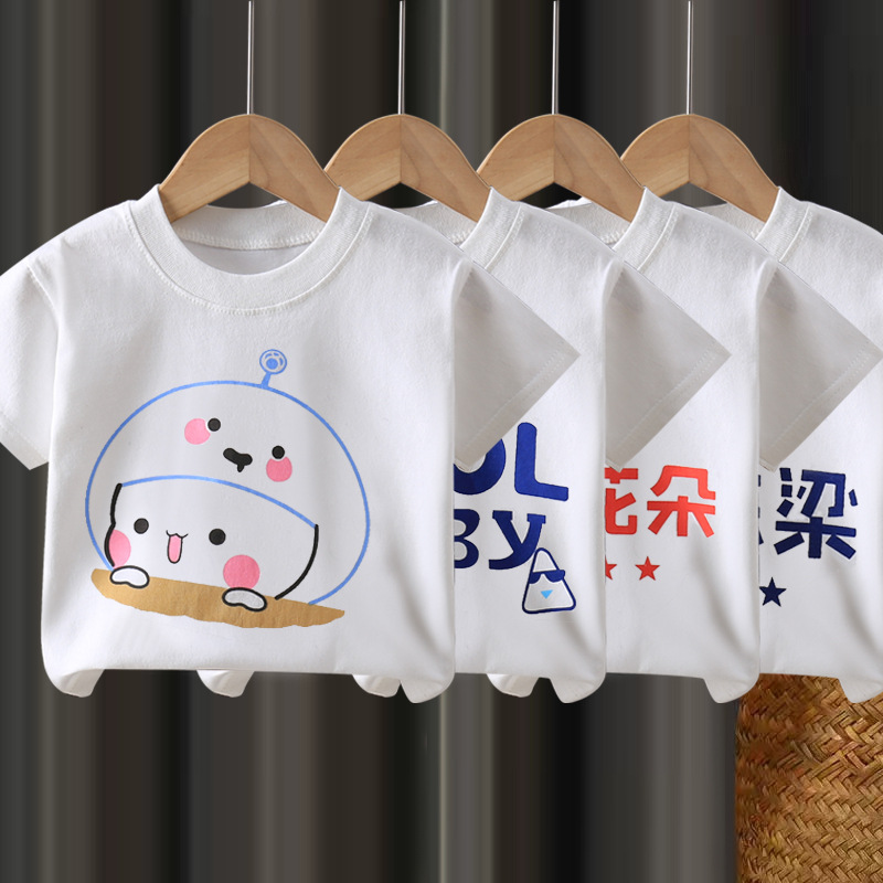 子供の純綿半袖の男女の子供の新型tシャツの赤ちゃんの夏の上着の子供の夏服の底のシャツの薄い金の100綿