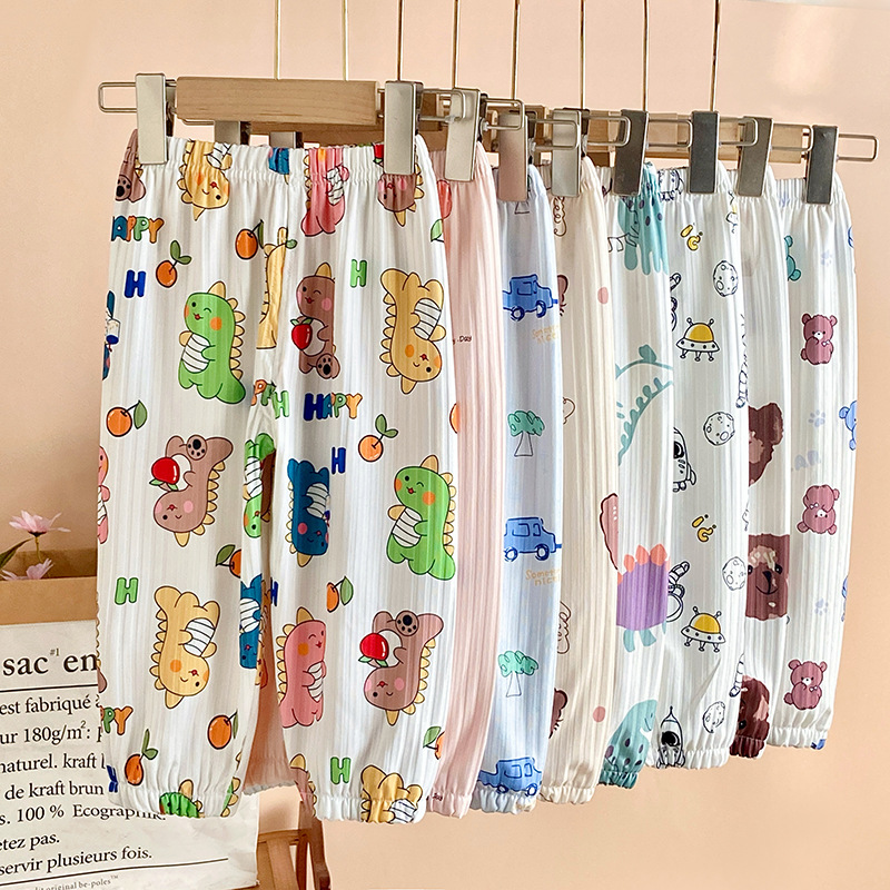 子供のズボンの夏の薄いタイプの赤ちゃんの氷の糸の防蚊のズボンの漫画の男女の子供の灯籠のズボンの氷のさわやかな速乾のエアコンのズボン