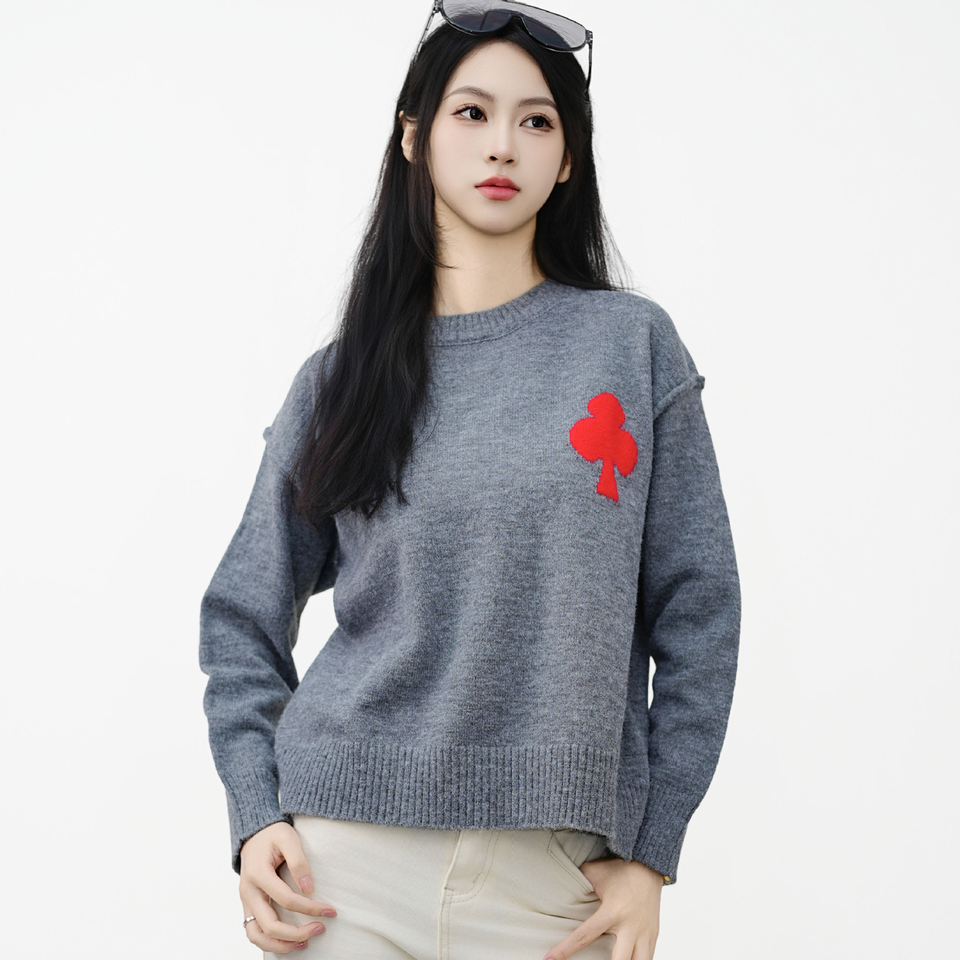 2025 秋冬新日本製小梅高品質セーター女性のラウンドネックジャカードニットセータートップ