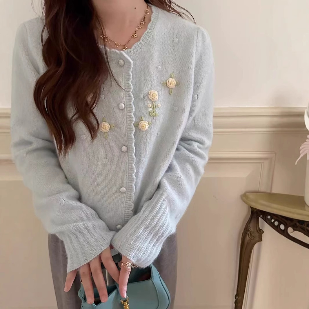 外国貿易シングルニットカーディガン、エレガントな刺繍入り、2025年秋新作、クロスボーダー、Amazon、ヨーロッパとアメリカの高品質セータージャケット