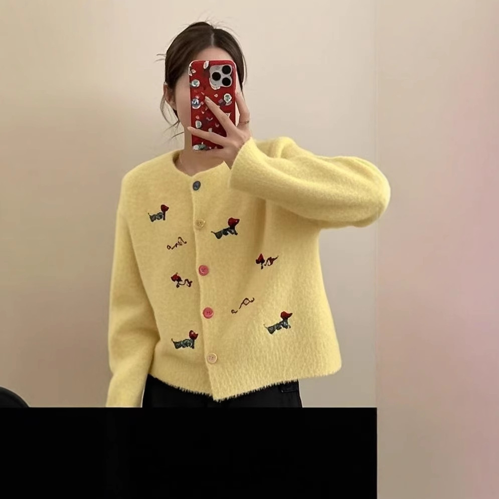 2025秋冬新作韓国風優しいスタイル韓国風ニットカーディガン、重厚な編み細工が施されたエレガントで高品質な女性用セーター