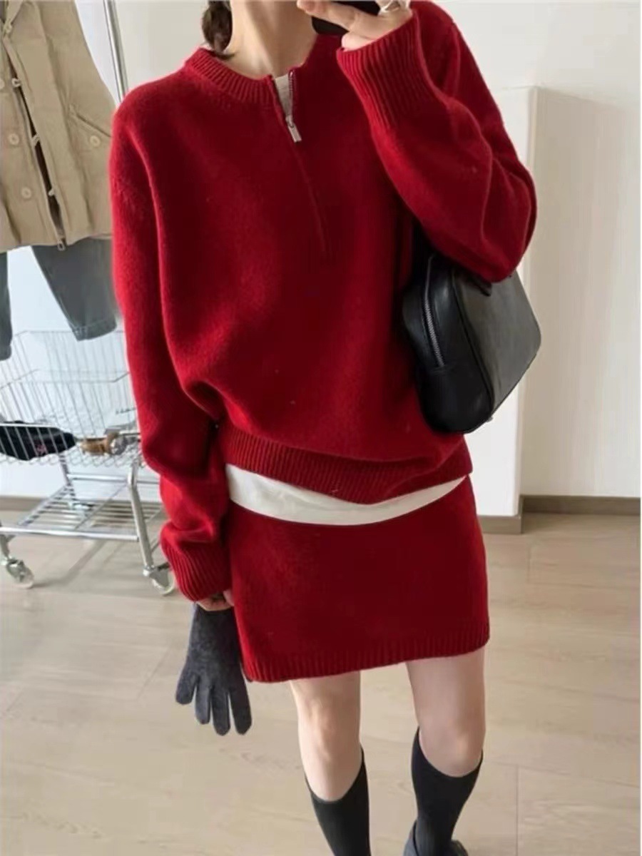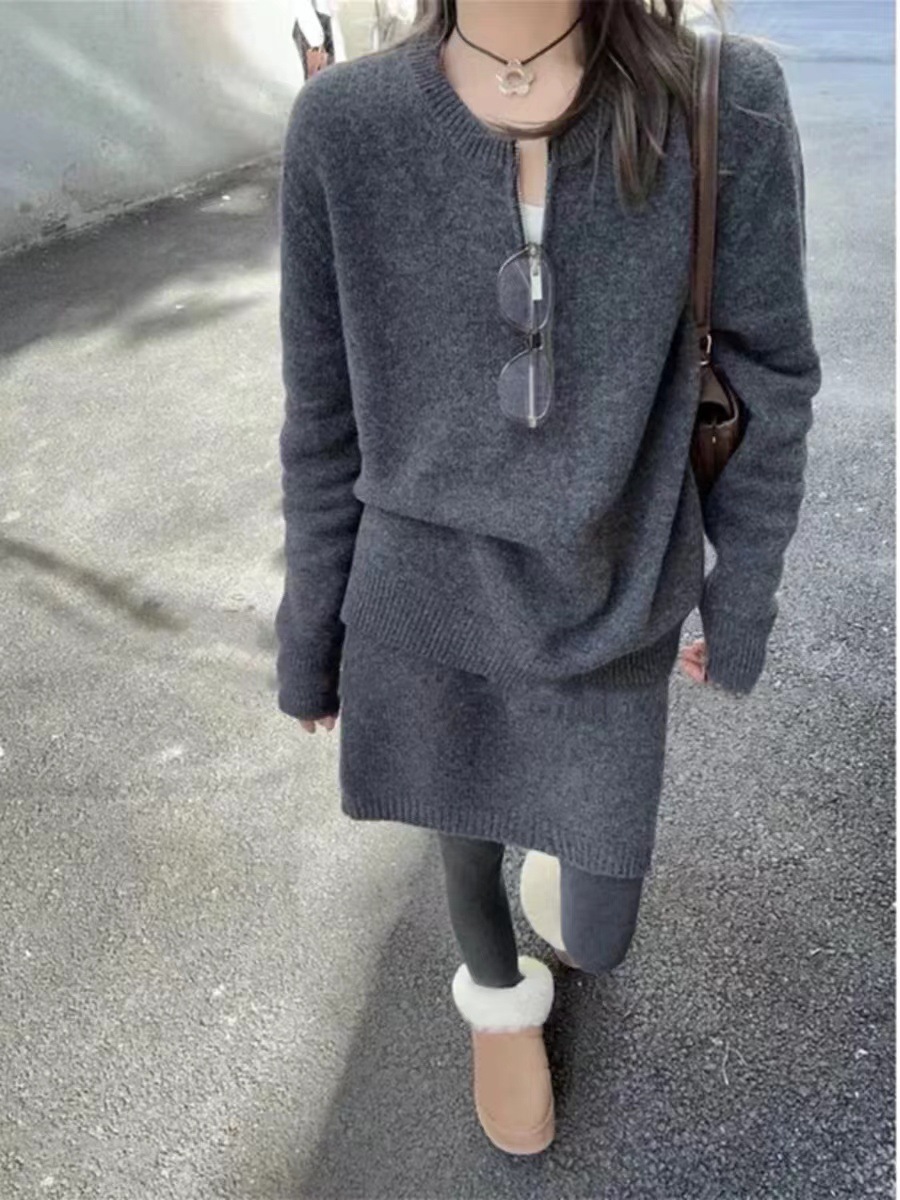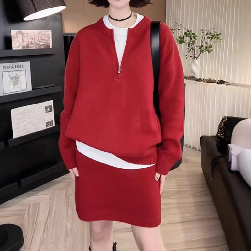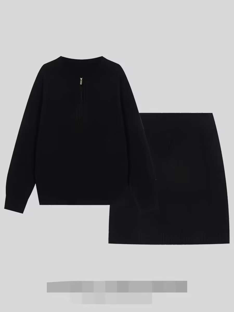2025秋冬新款针织套装减龄洋气拉链韩系针织半身裙优质毛衣套装女