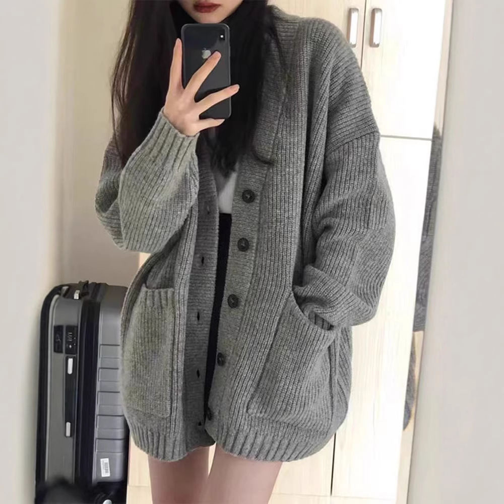 2025 秋冬新スタイルシンプルな日本製ニットカーディガンスリムカジュアルルーズ多用途カレッジスタイルセータージャケット女性用