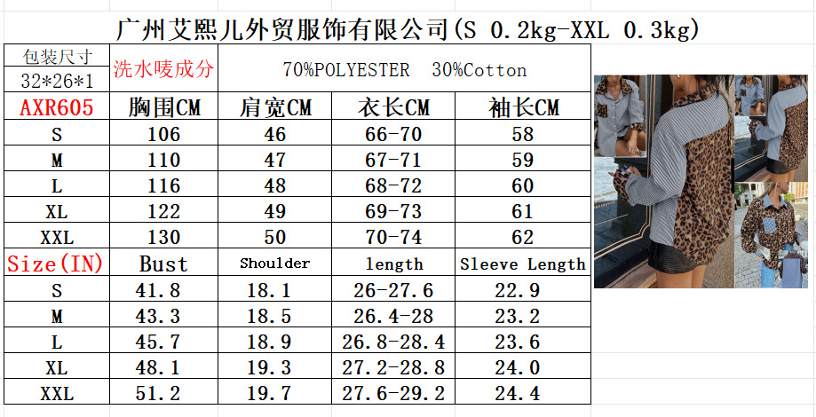 2025秋季跨境欧美女装时尚休闲百搭长袖豹纹拼接开衫条纹衬衫上衣