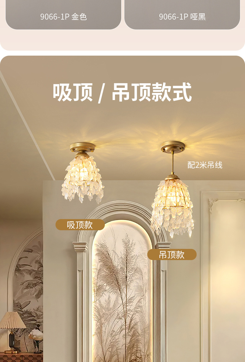 法式中古黑色水晶门厅入户玄关吊灯美式过道灯阳台吸顶灯氛围灯