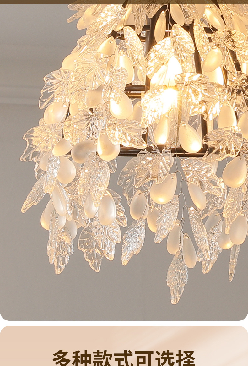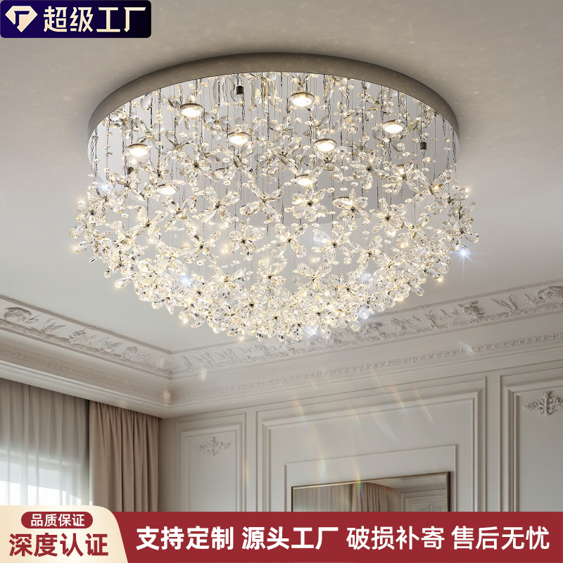 フレンチリビングルームシャンデリアホールメインライト透明フラワーライト高級ハイエンドシャンデリアデュプレックスレストラン照明