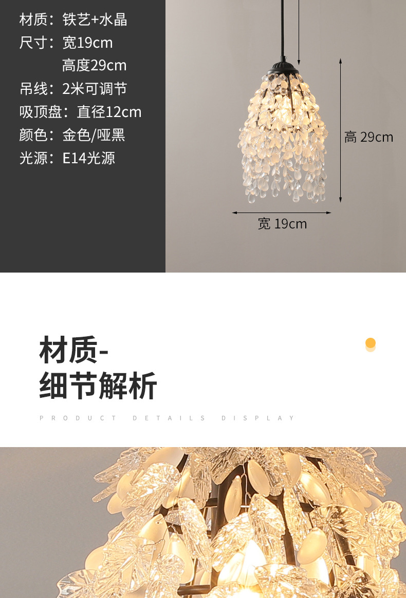 フレンチガラスシャンデリアレストランライト高級クリエイティブベッドサイドクリスタルフラワー小さなシャンデリア廊下通路玄関ライト