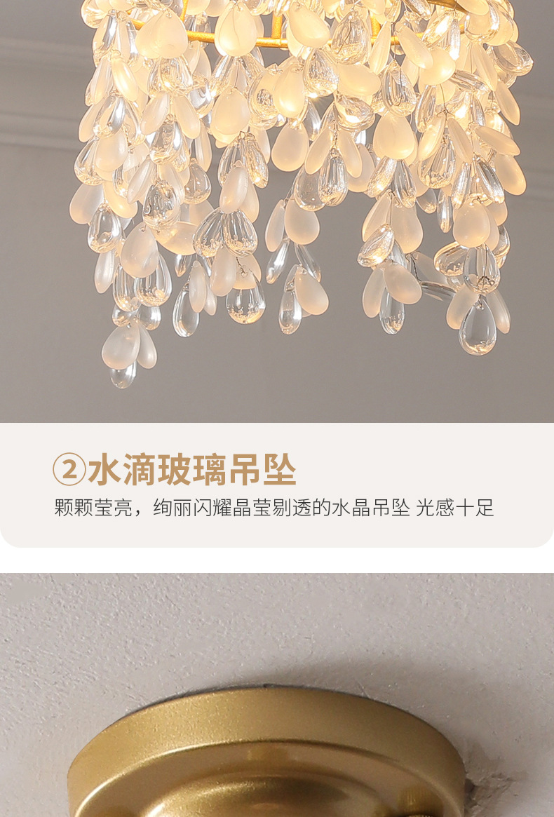 迪格雅法式轻奢水滴串卧室床头小吊灯复古浪漫玄关过道走廊吸顶灯