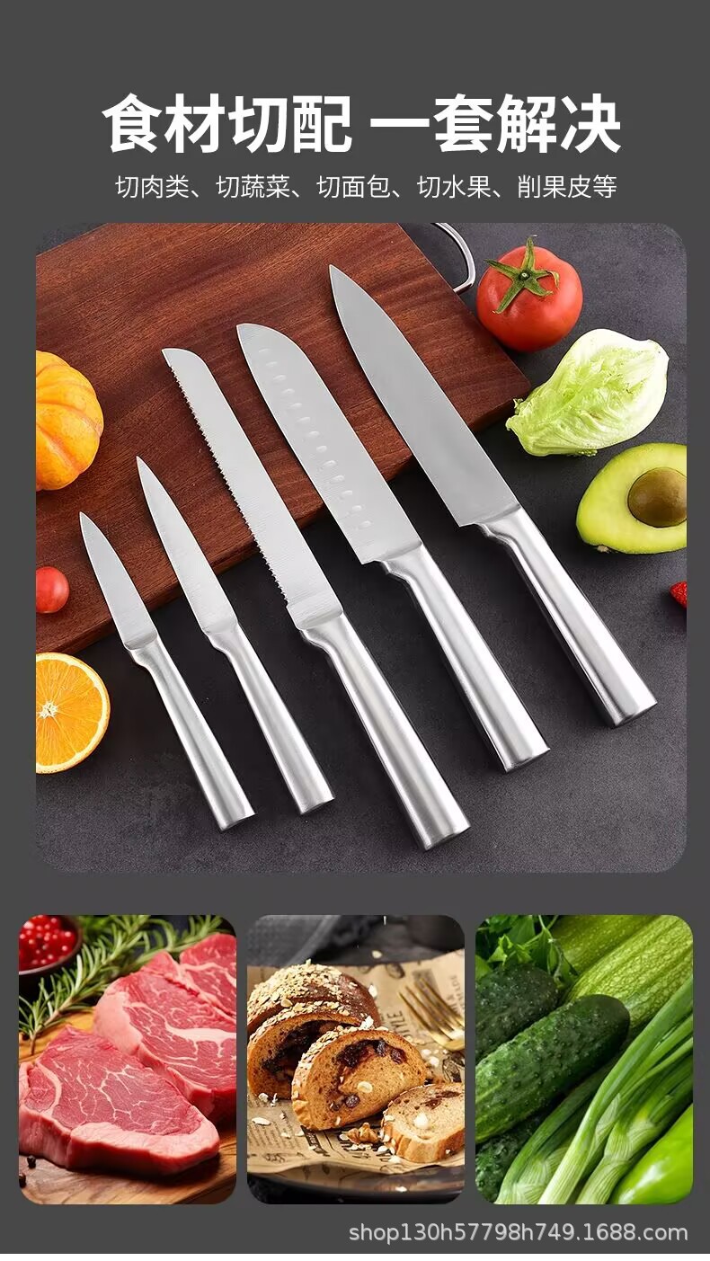 家美康外贸刀具套装全钢五件套刀不锈钢厨师刀厨房切菜刀空心柄刀