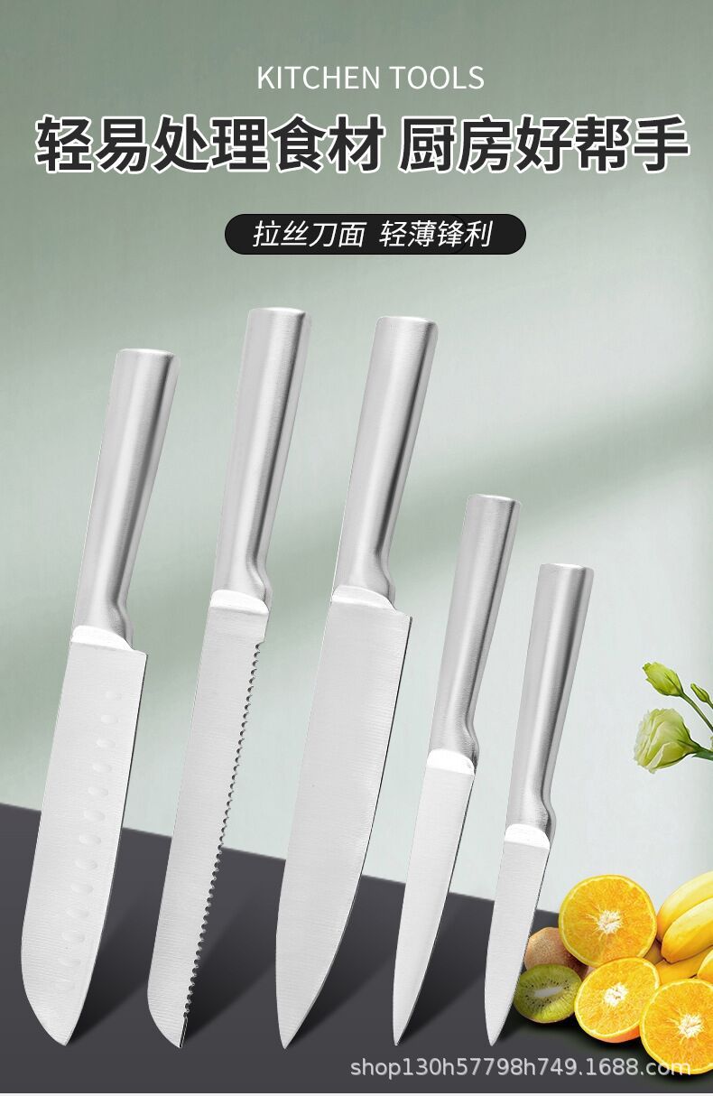不锈钢刀具套装5件套 家用厨房切片刀面包刀组合 跨境礼品套刀