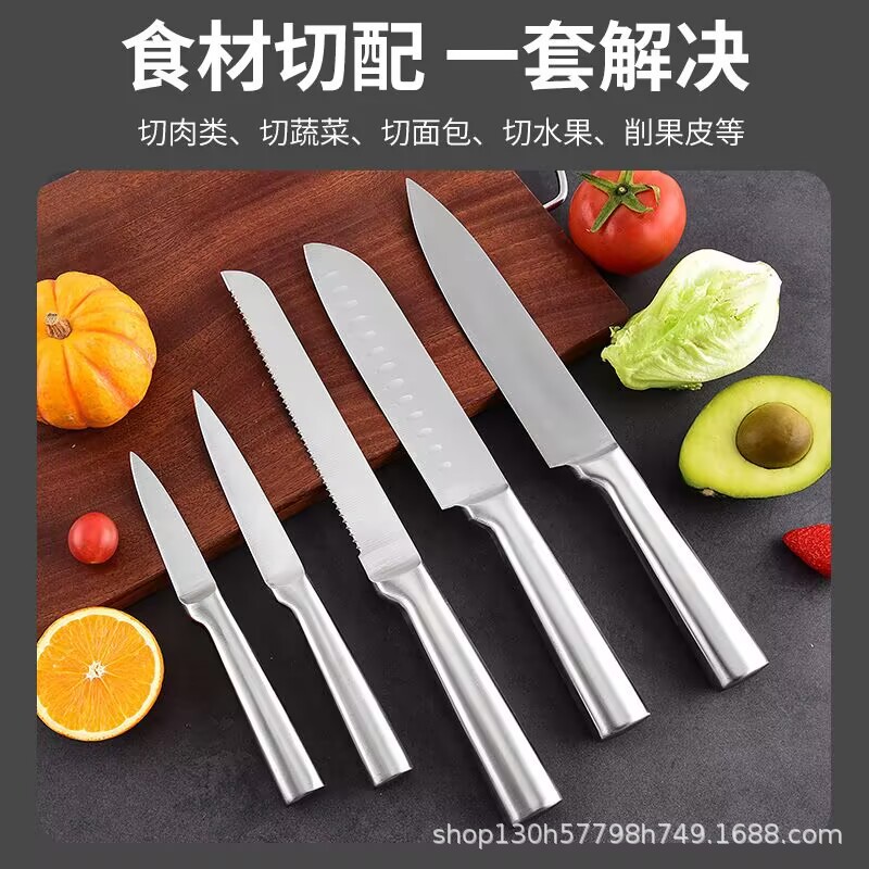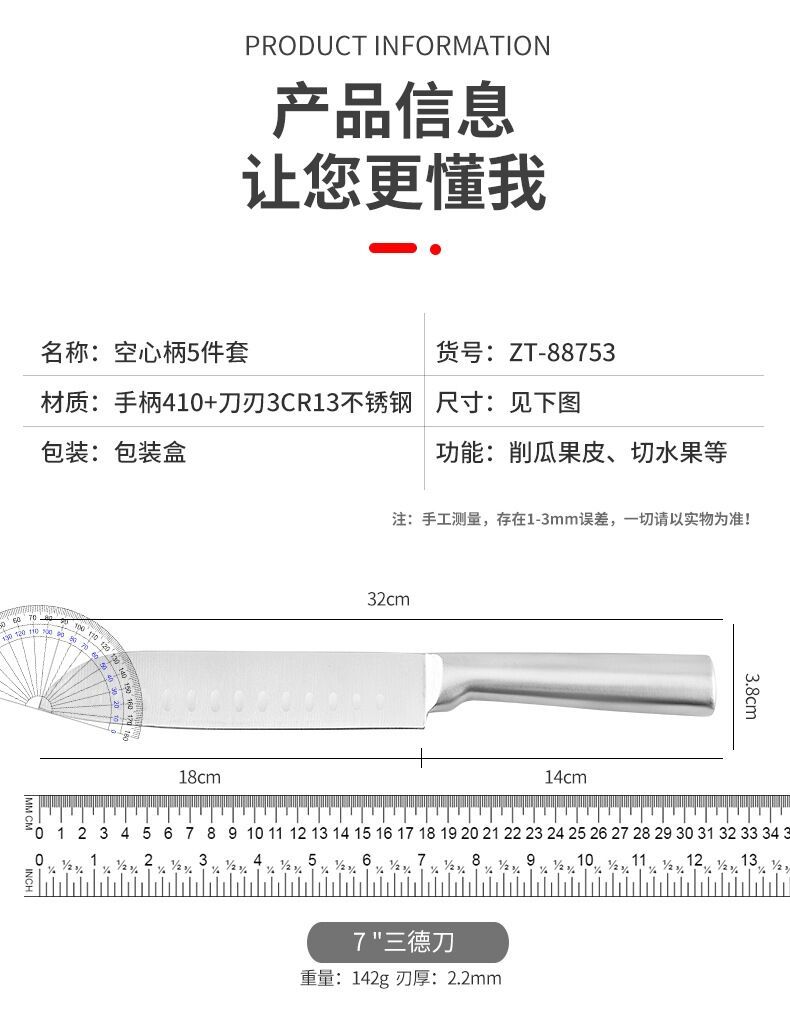 外贸全钢空心柄五件套不锈钢厨师刀锋利料理刀日式刀家用水果刀