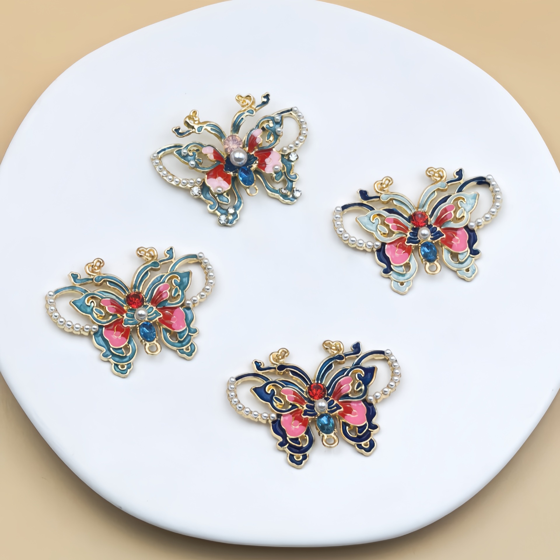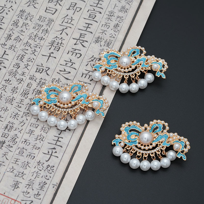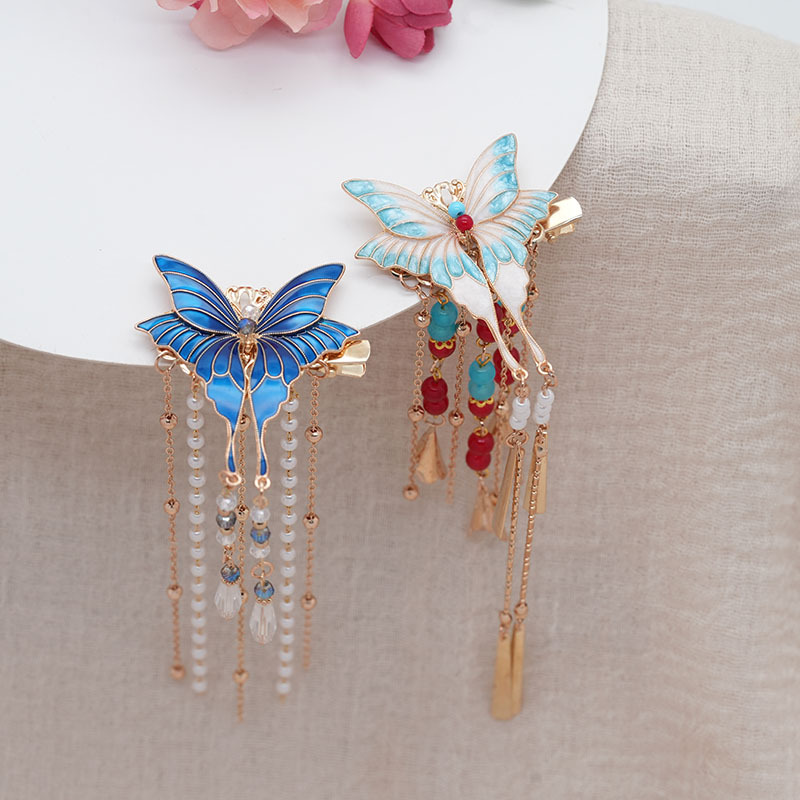 合金エナメルフィリグリーオイルドリップパールバタフライタッセルヘアピンレトロ漢服チャイナサイドクリップアクセサリーヘアピン