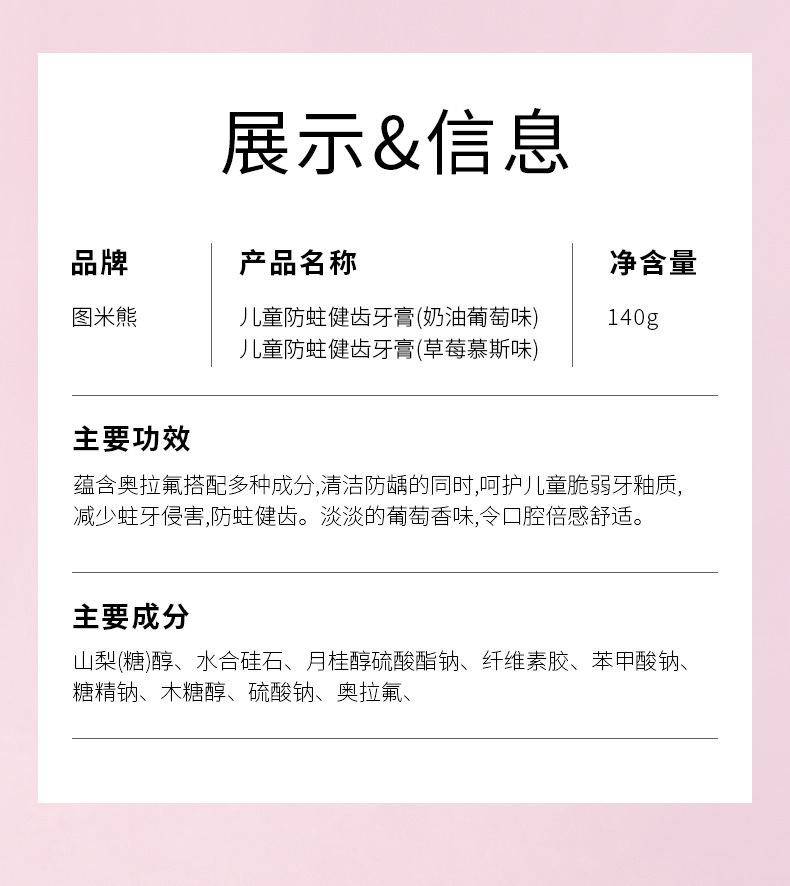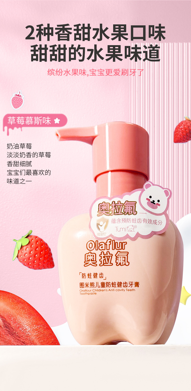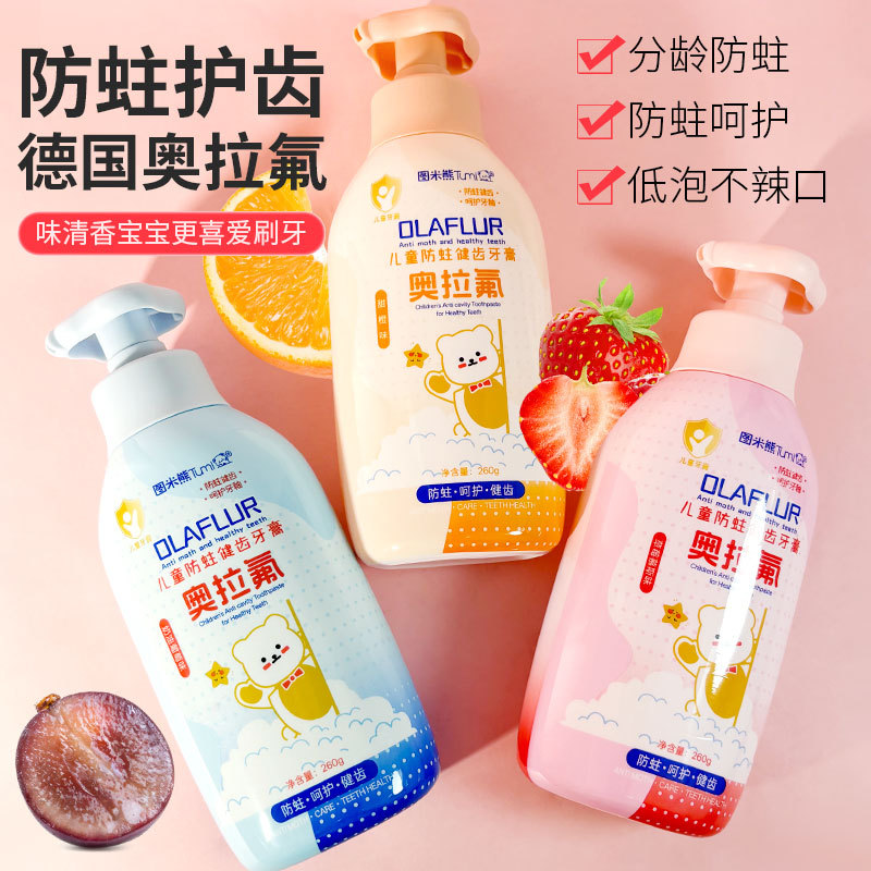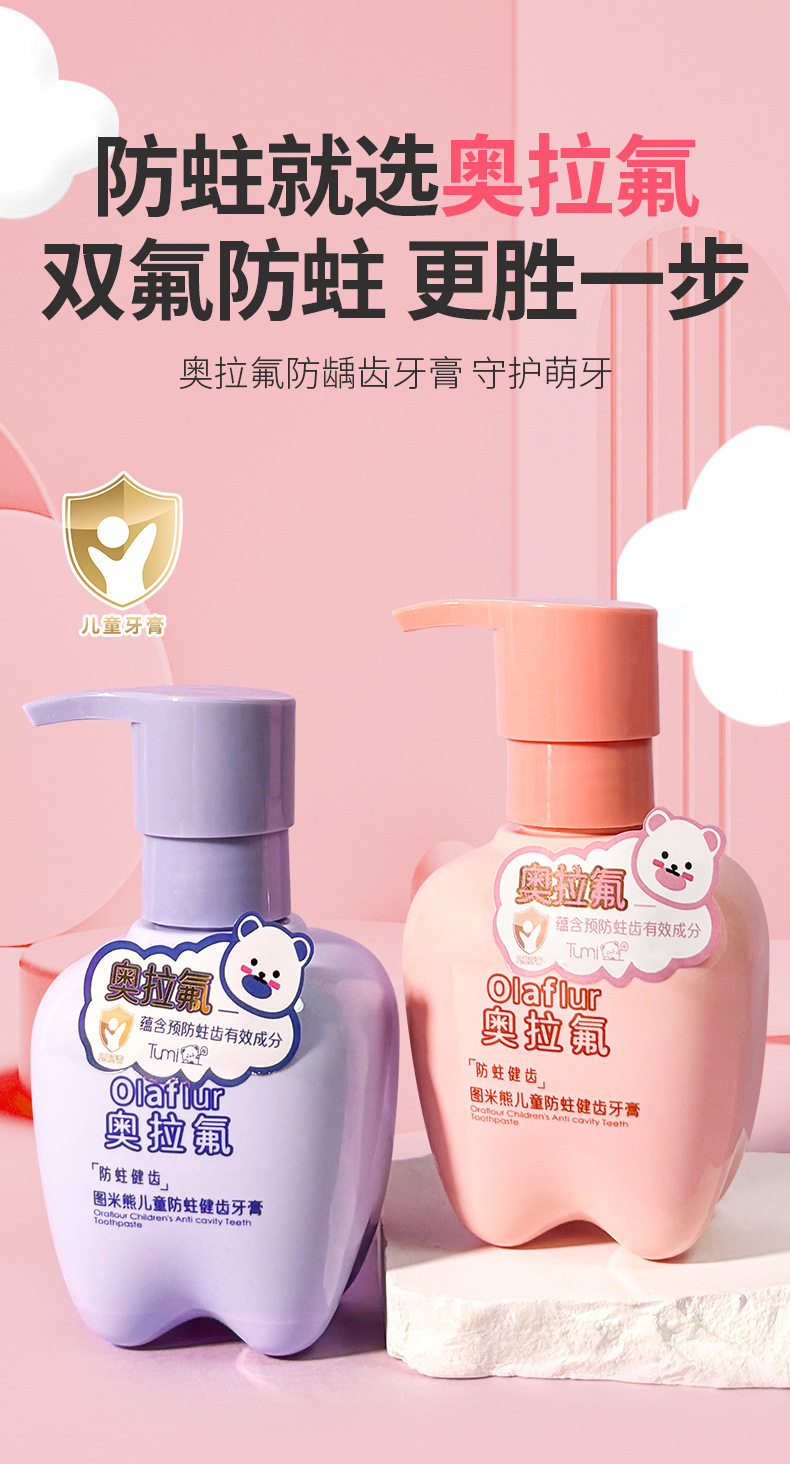 图米熊草莓味奥拉氟儿童牙膏儿童防蛀牙健齿护牙换牙小孩学生专用