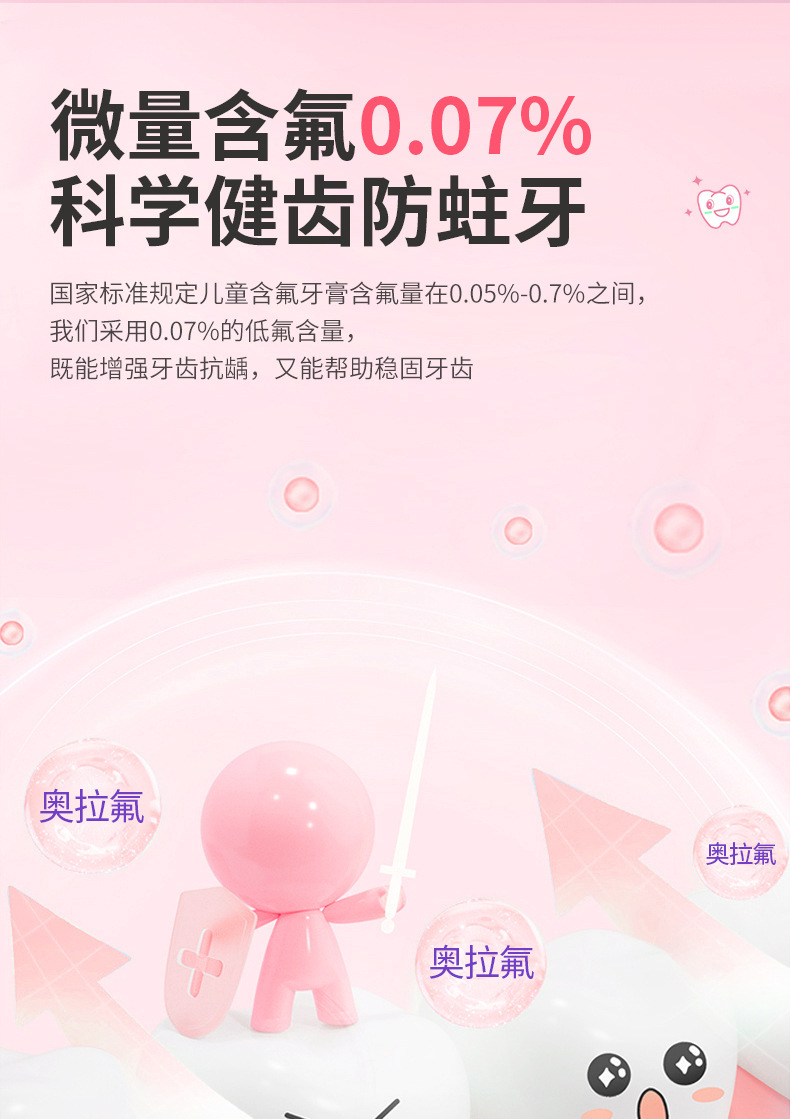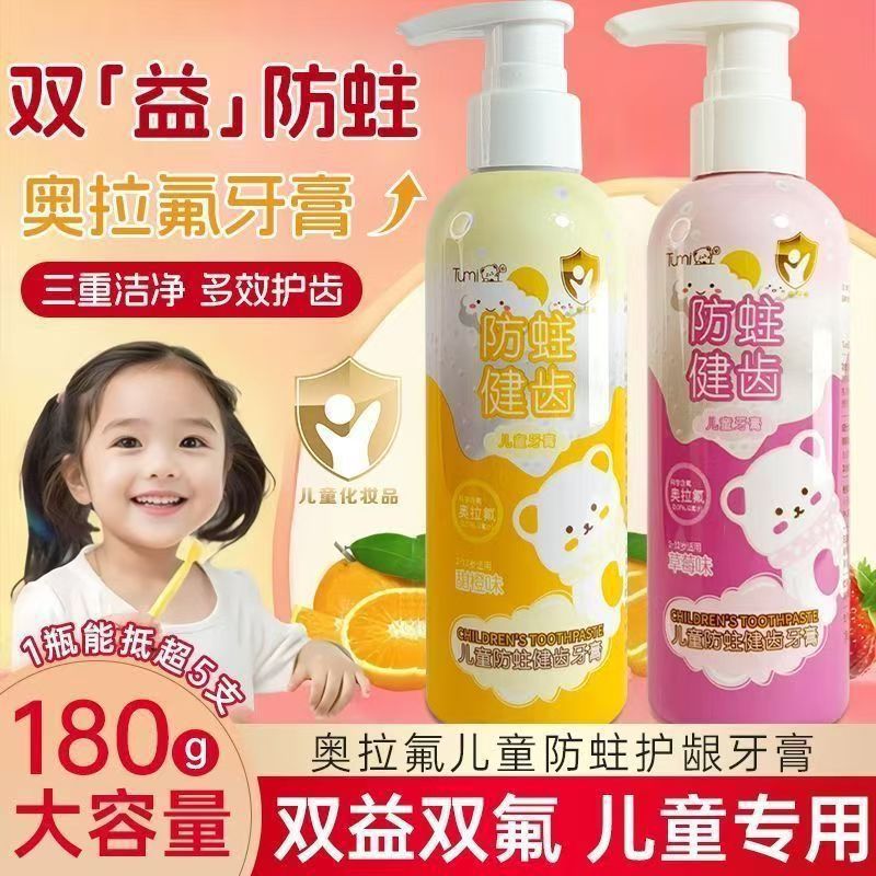 奥拉氟儿童牙膏3-12岁水果味含氟防蛀牙固齿宝宝护龈龋齿厂家现货
