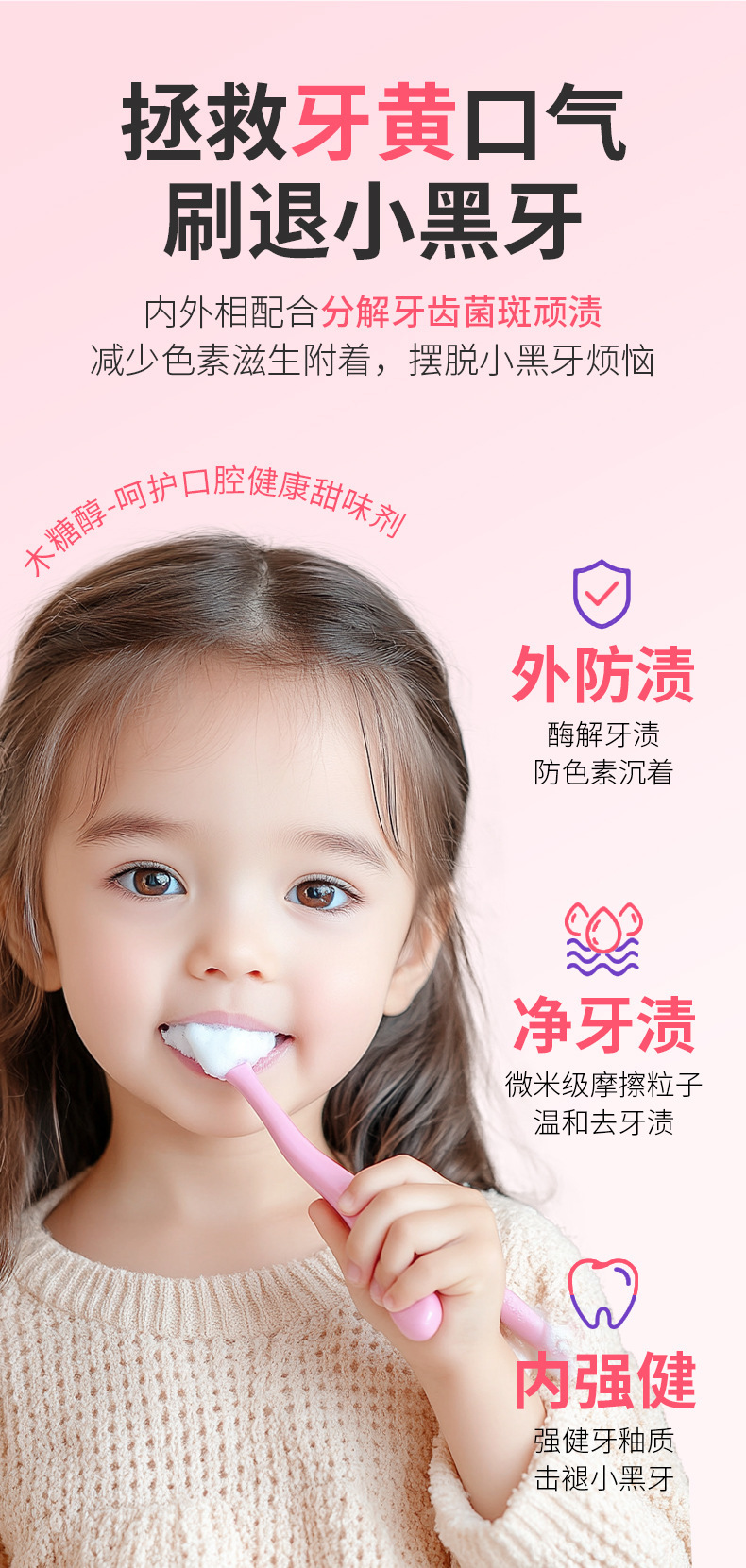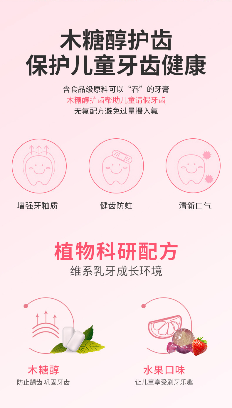 オーラフッ化物子供用プレス歯磨き粉には、1、3、6、12 歳の赤ちゃん、中型および大型の子供向けの虫歯予防および歯の保護が含まれています。歯の交換期間は広州です。