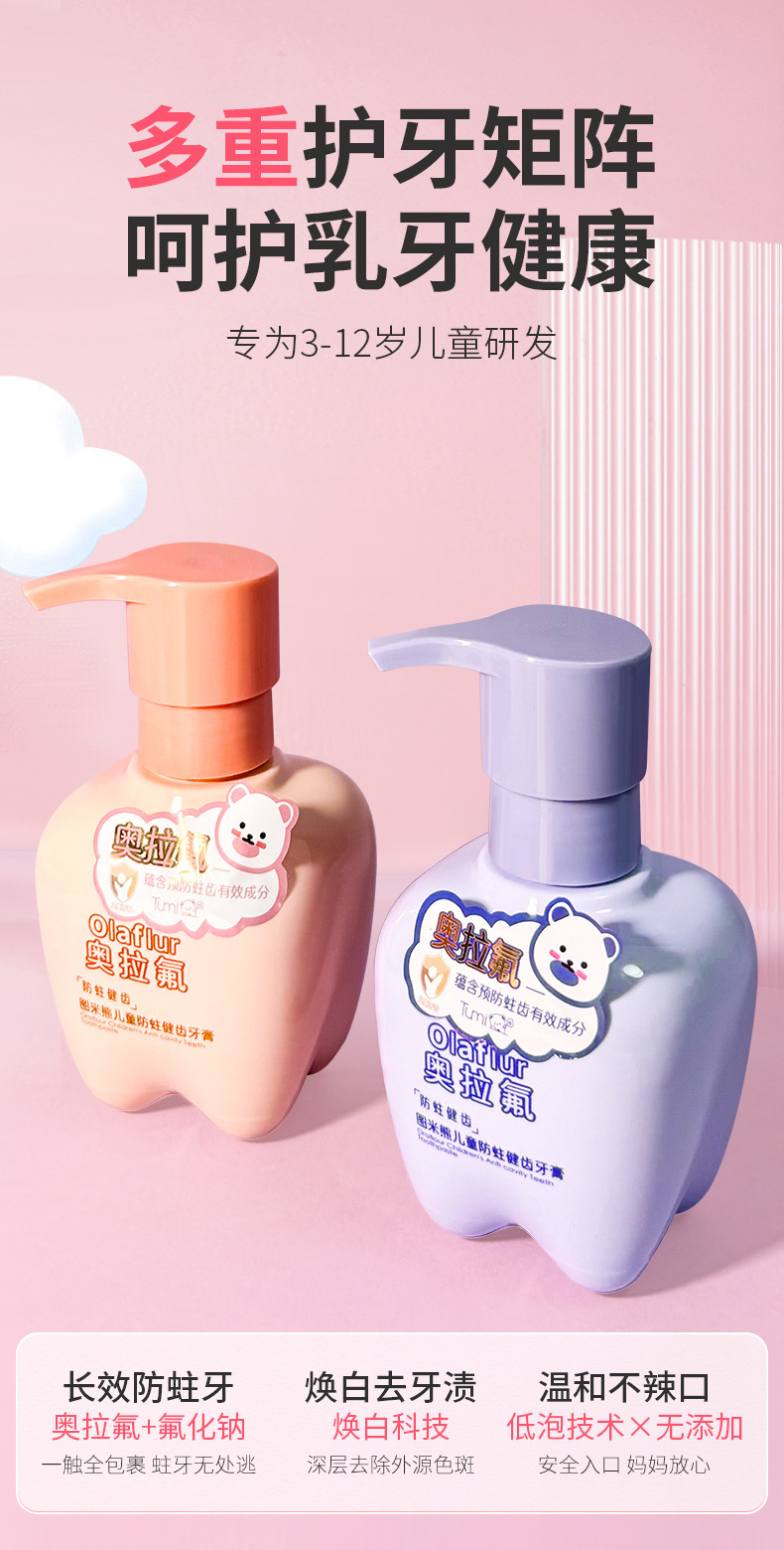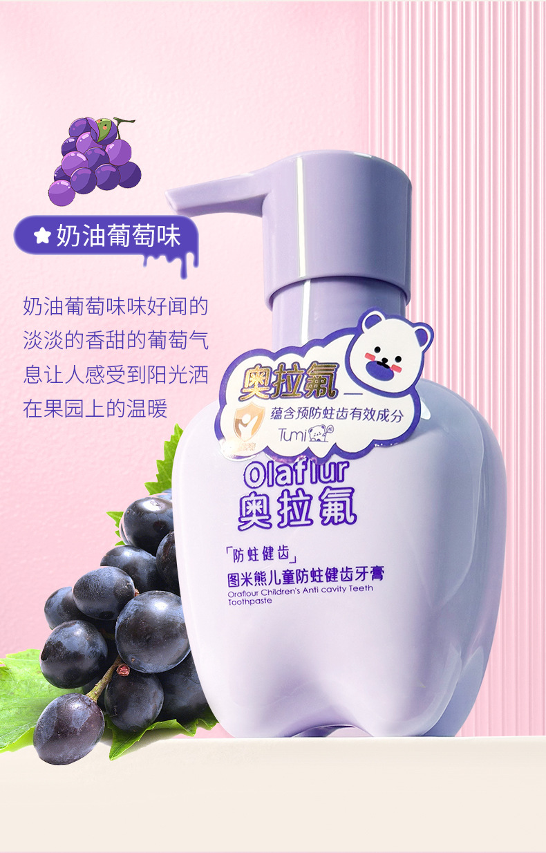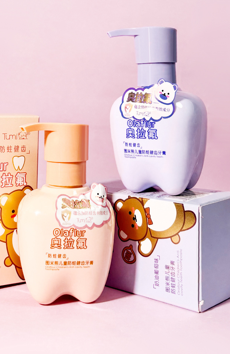 図米熊奥拉フッ素益生菌児童健歯防虫歯磨き粉果物味フッ素押圧式児童歯磨き粉