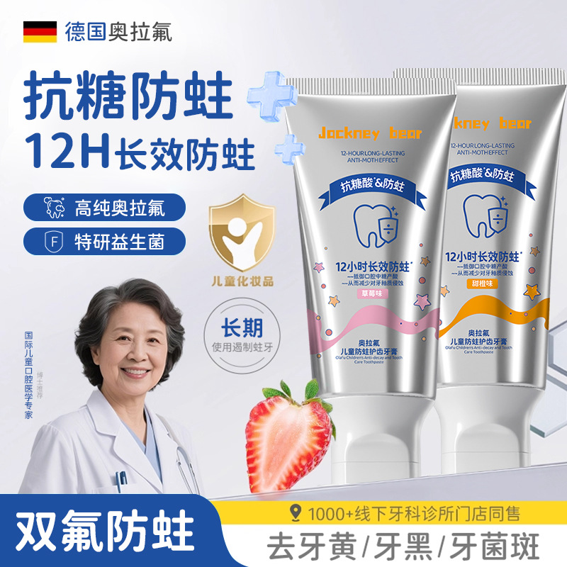 婴幼儿奥拉氟儿童防蛀牙膏1-3-6-12岁抗糖酸防龋齿含氟宝宝牙膏