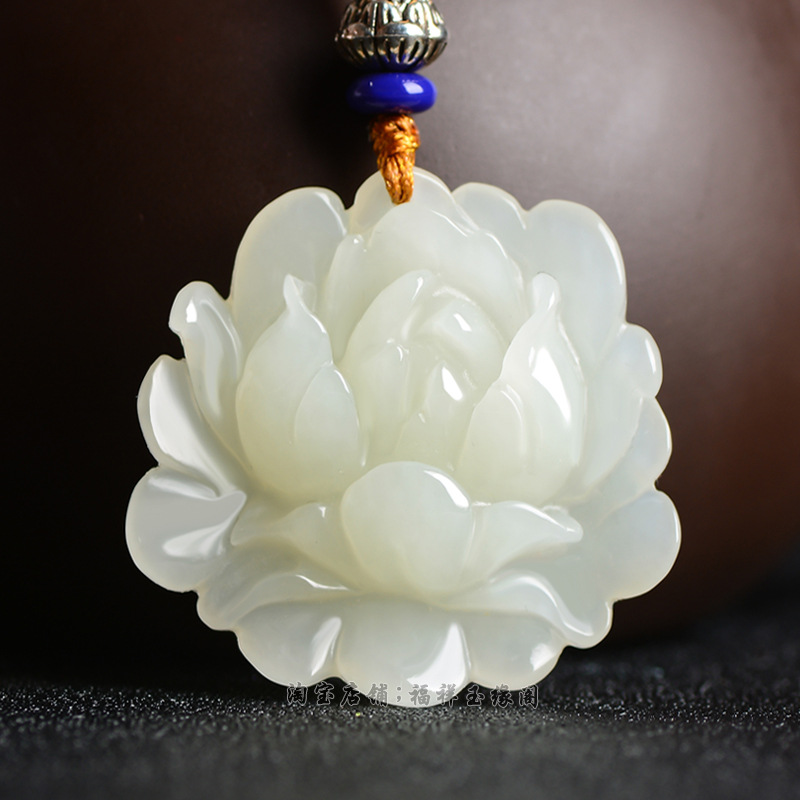 純粋な天然の和田玉のペンダントの男女の金の玉佩の白玉の蓮の花の玉は玉のハスの花のネックレスのセーターのチェーンのペンダントにぶら下がっています。