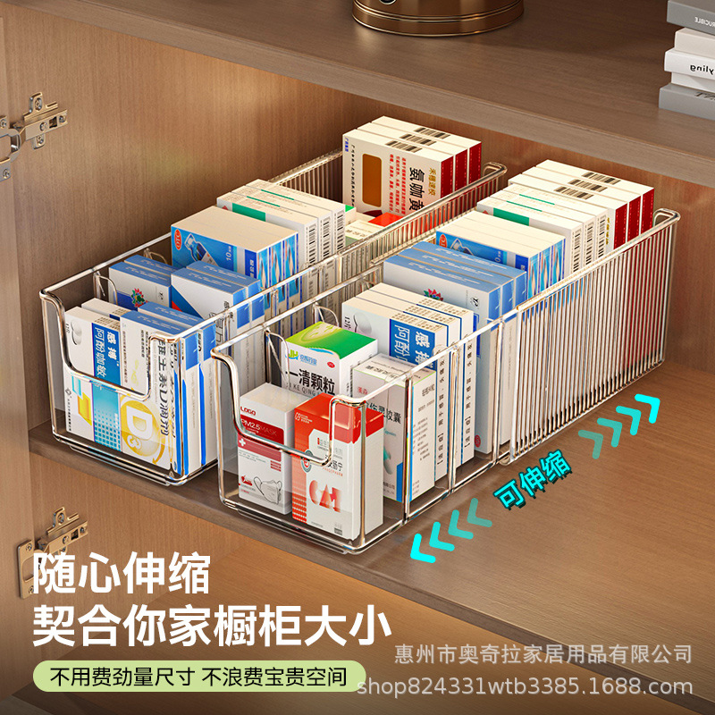 药品收纳盒家用柜内急救药膏置物架透明输液盒分格伸缩药物医药箱