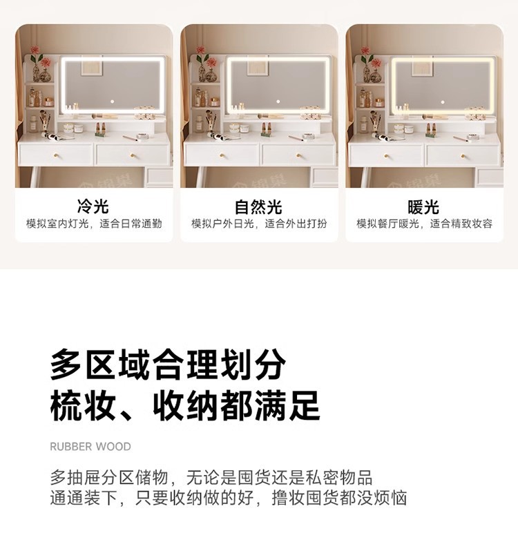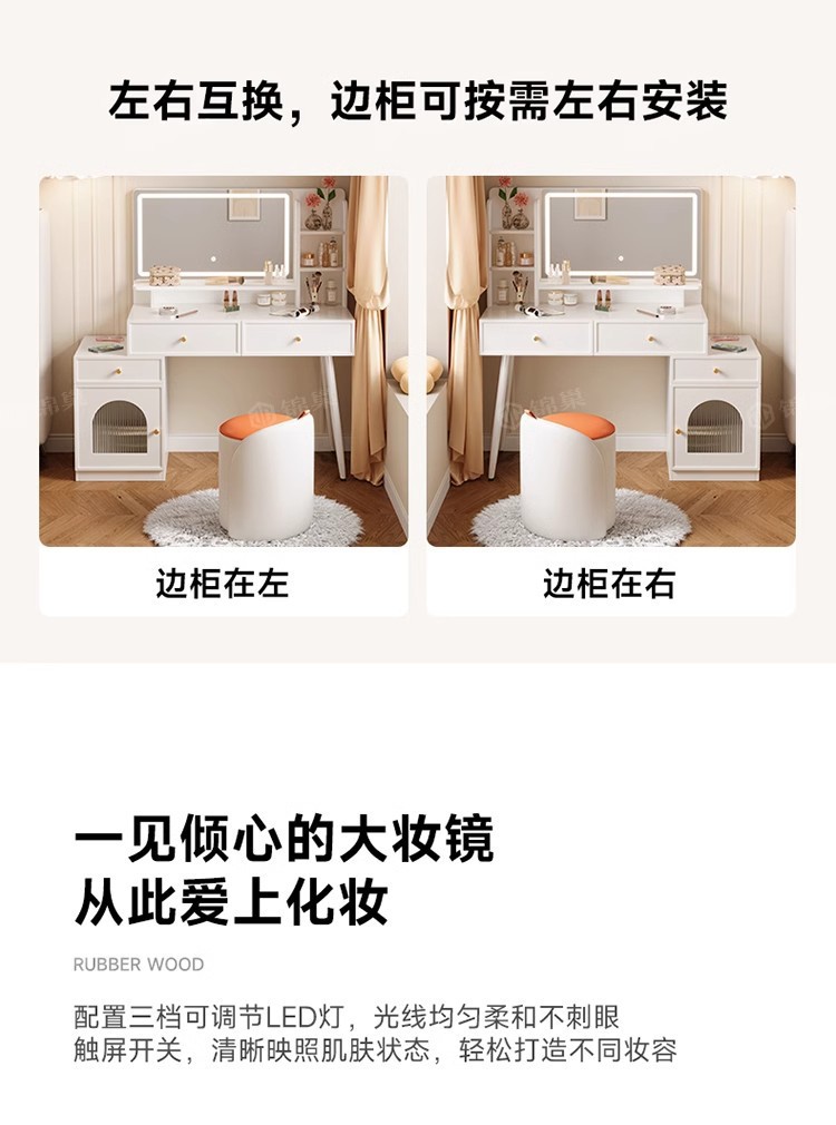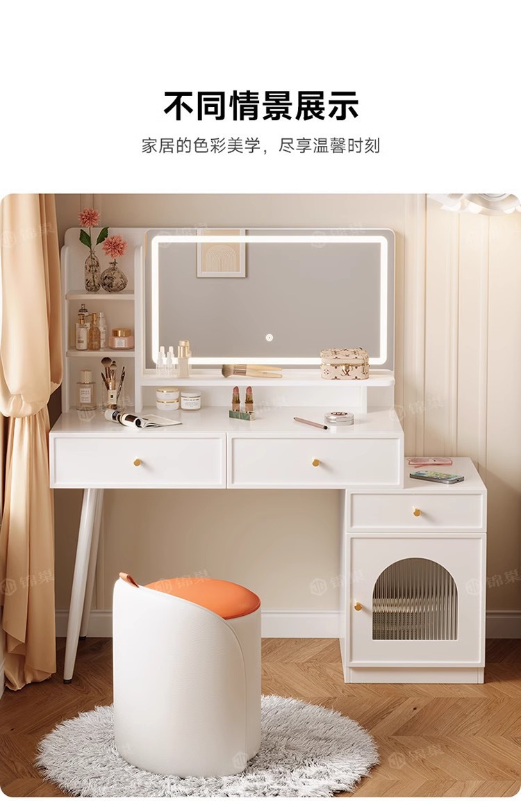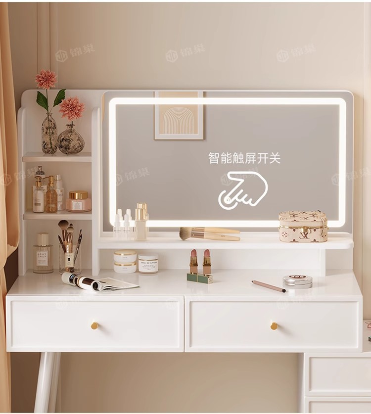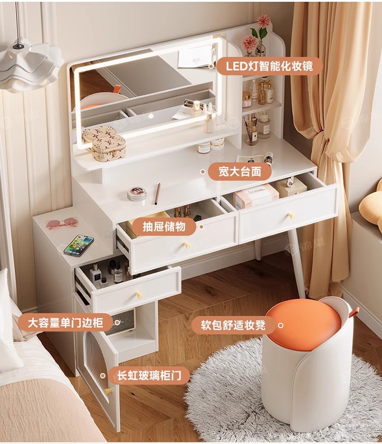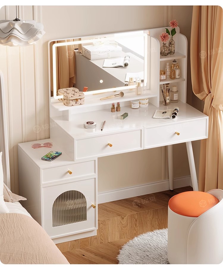 ライト付き寝室用家具、化粧台、化粧スツール付きパネル家具、引き出し収納、クロスボーダー化粧台