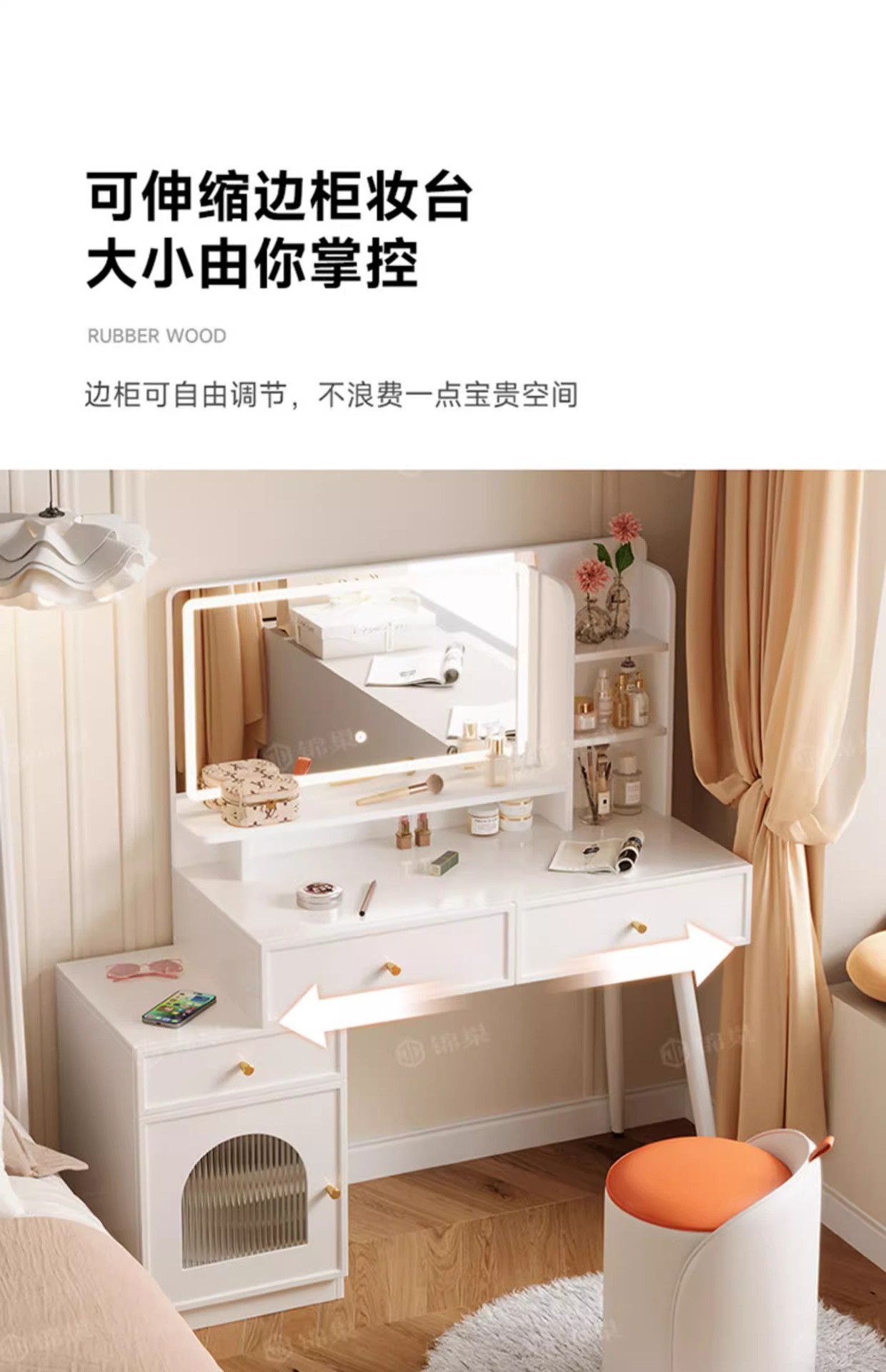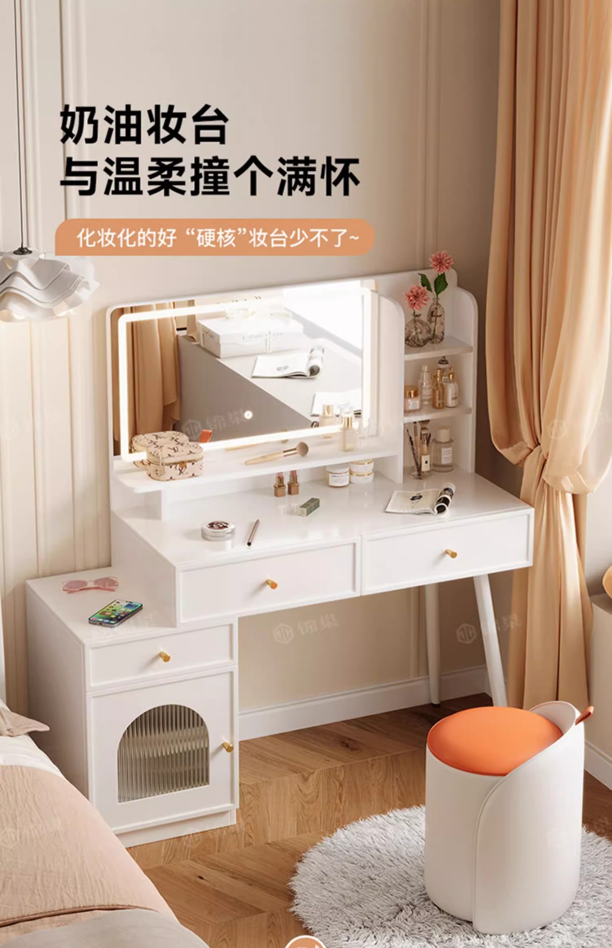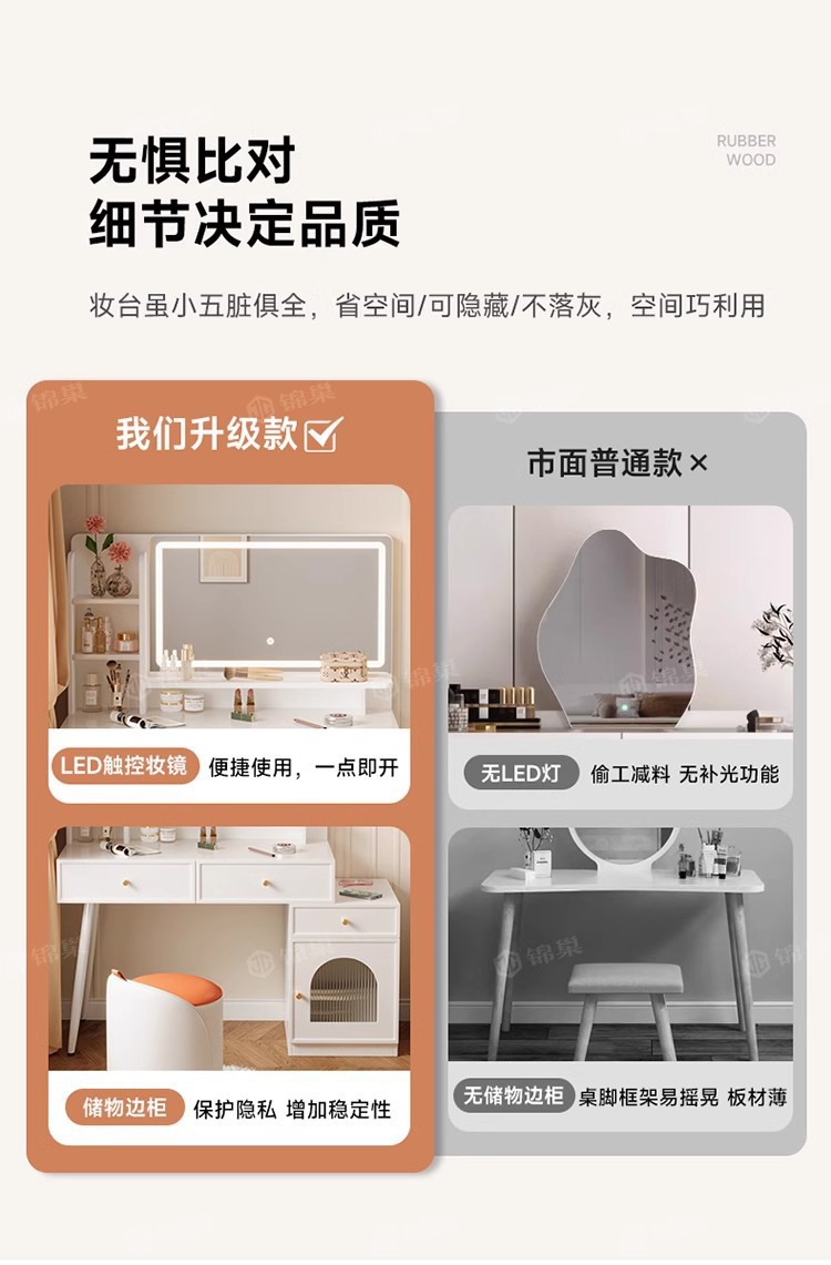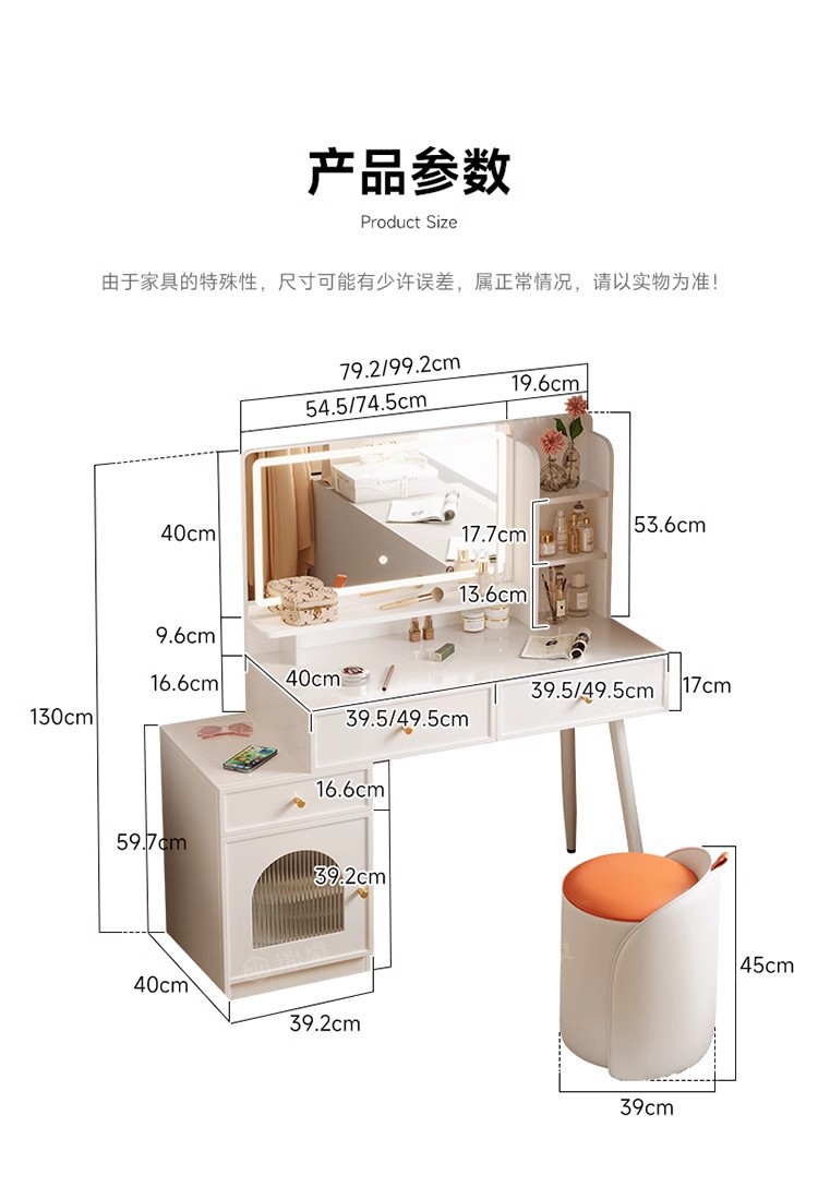 ライト付き寝室用家具、化粧台、化粧スツール付きパネル家具、引き出し収納、クロスボーダー化粧台