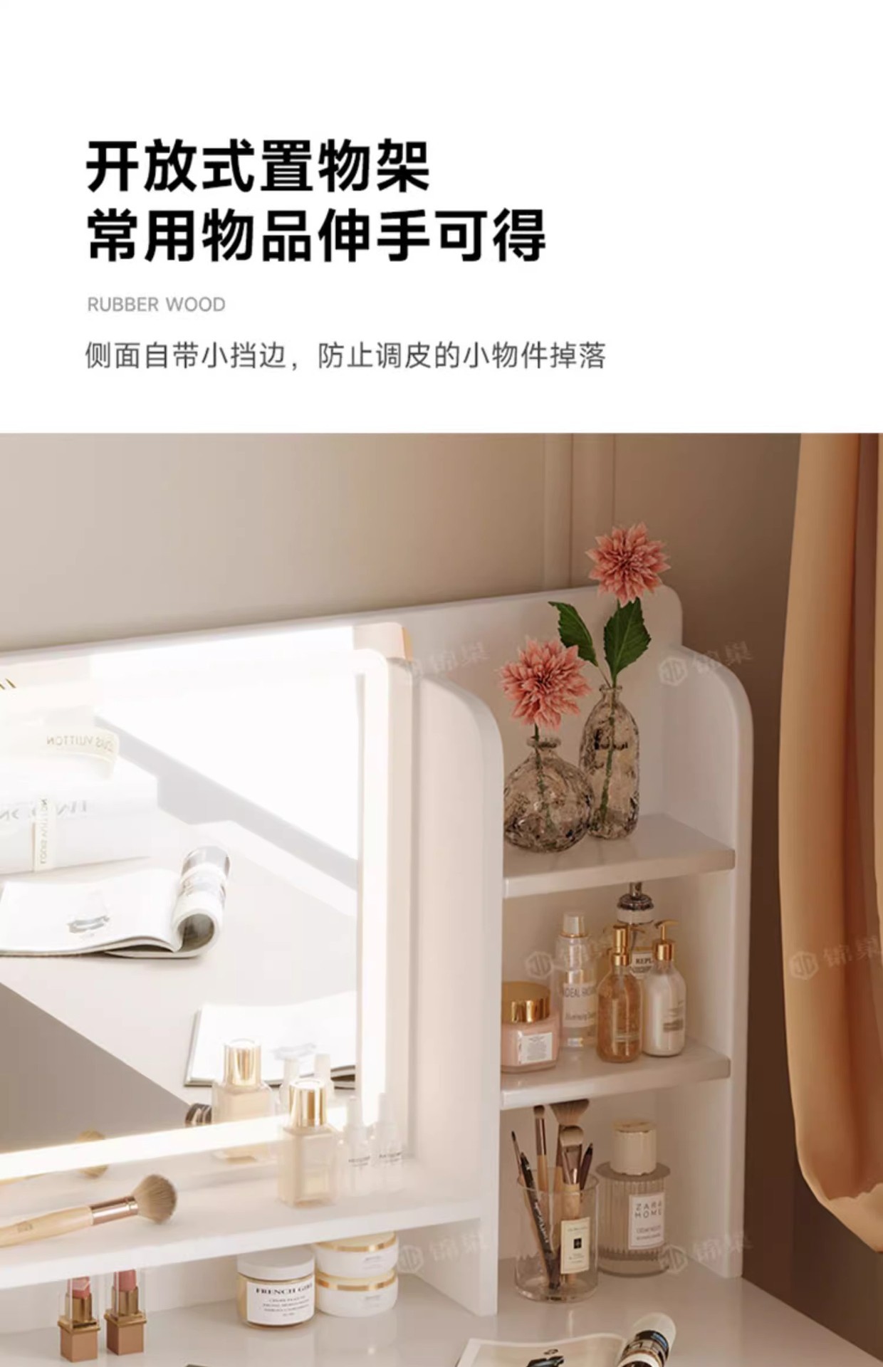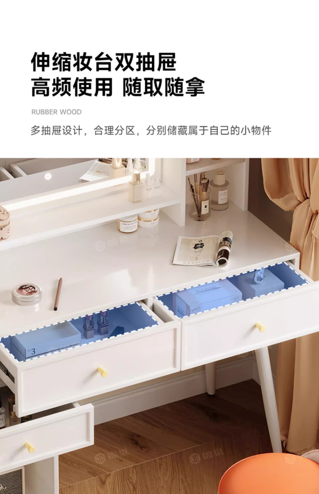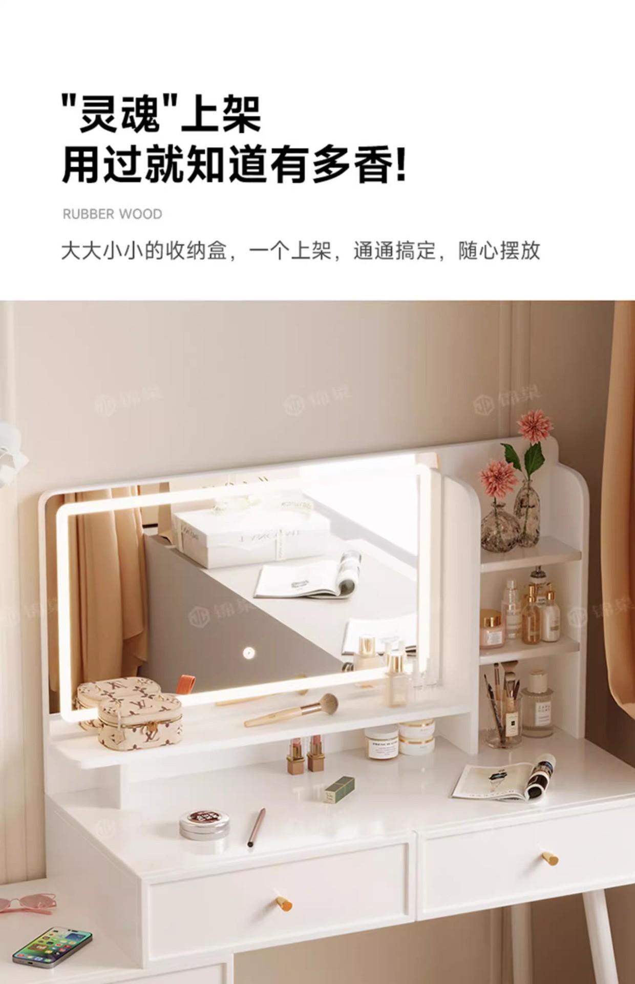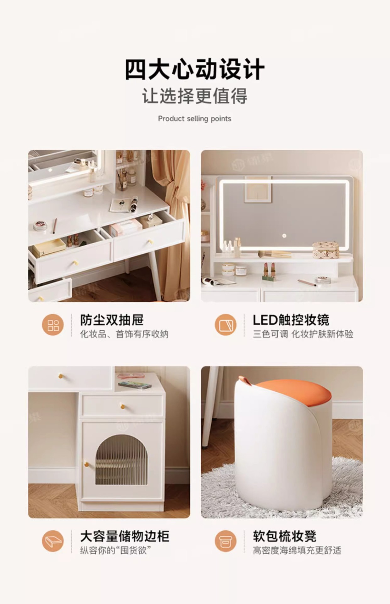ライト付き寝室用家具、化粧台、化粧スツール付きパネル家具、引き出し収納、クロスボーダー化粧台