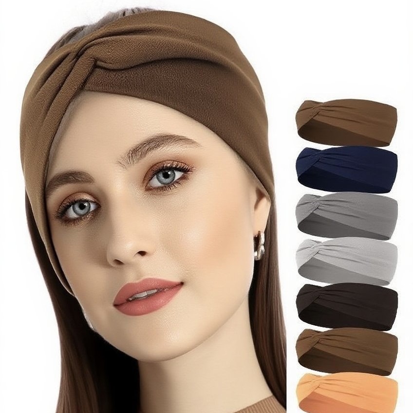 アマゾン欧米の爆発的な純色の広い髪帯の高弾力運動のヘッドバンドは汗の頭巾を吸います。