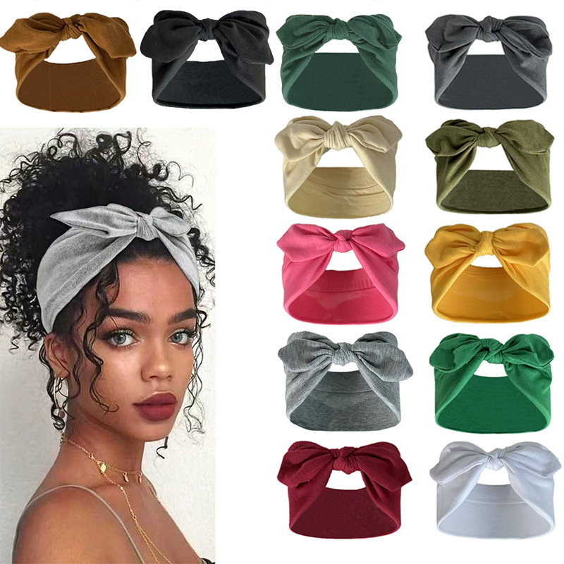 打结兔纯色弹力耳朵蝴蝶结发带瑜伽运动头带吸汗止汗弹力头饰欧美