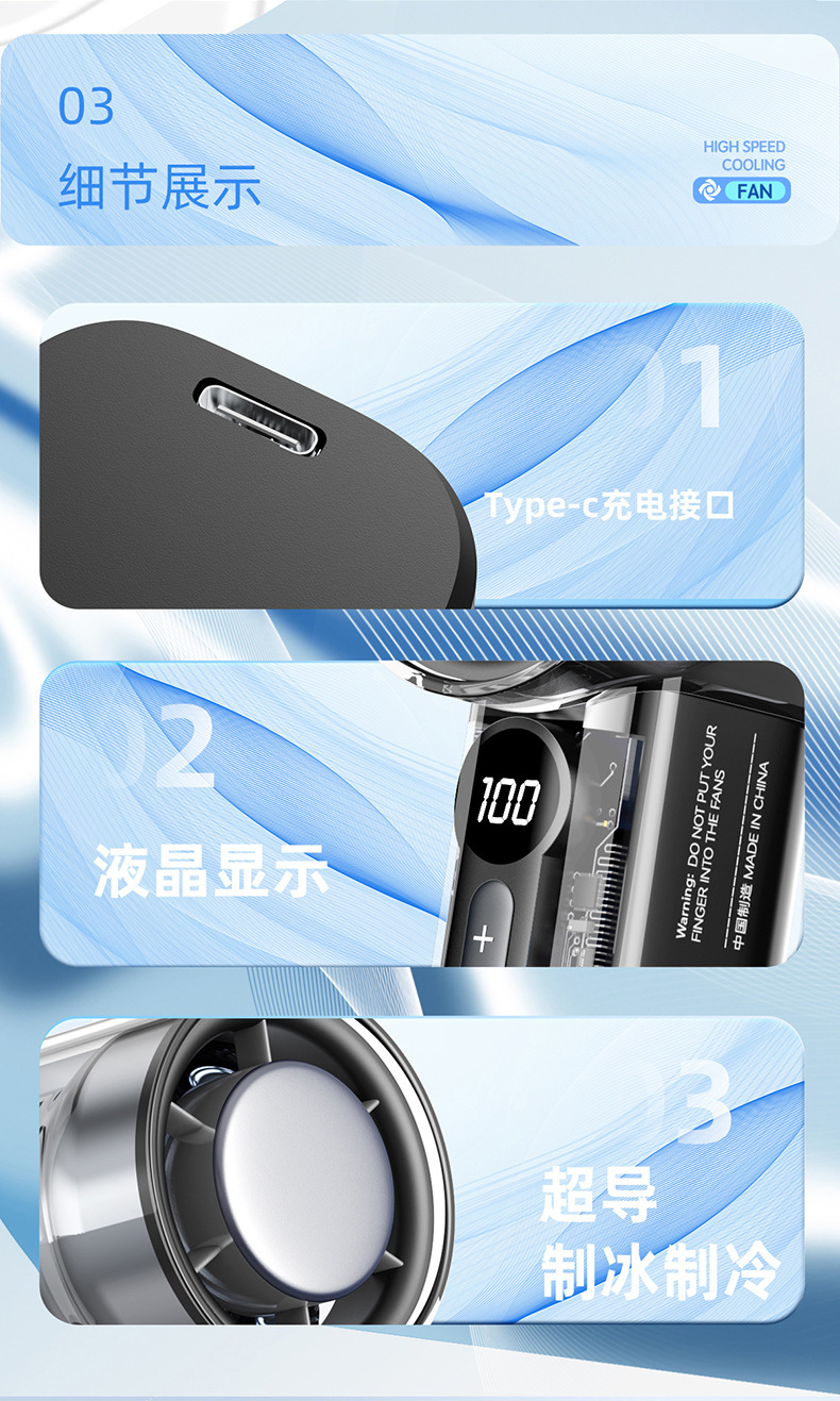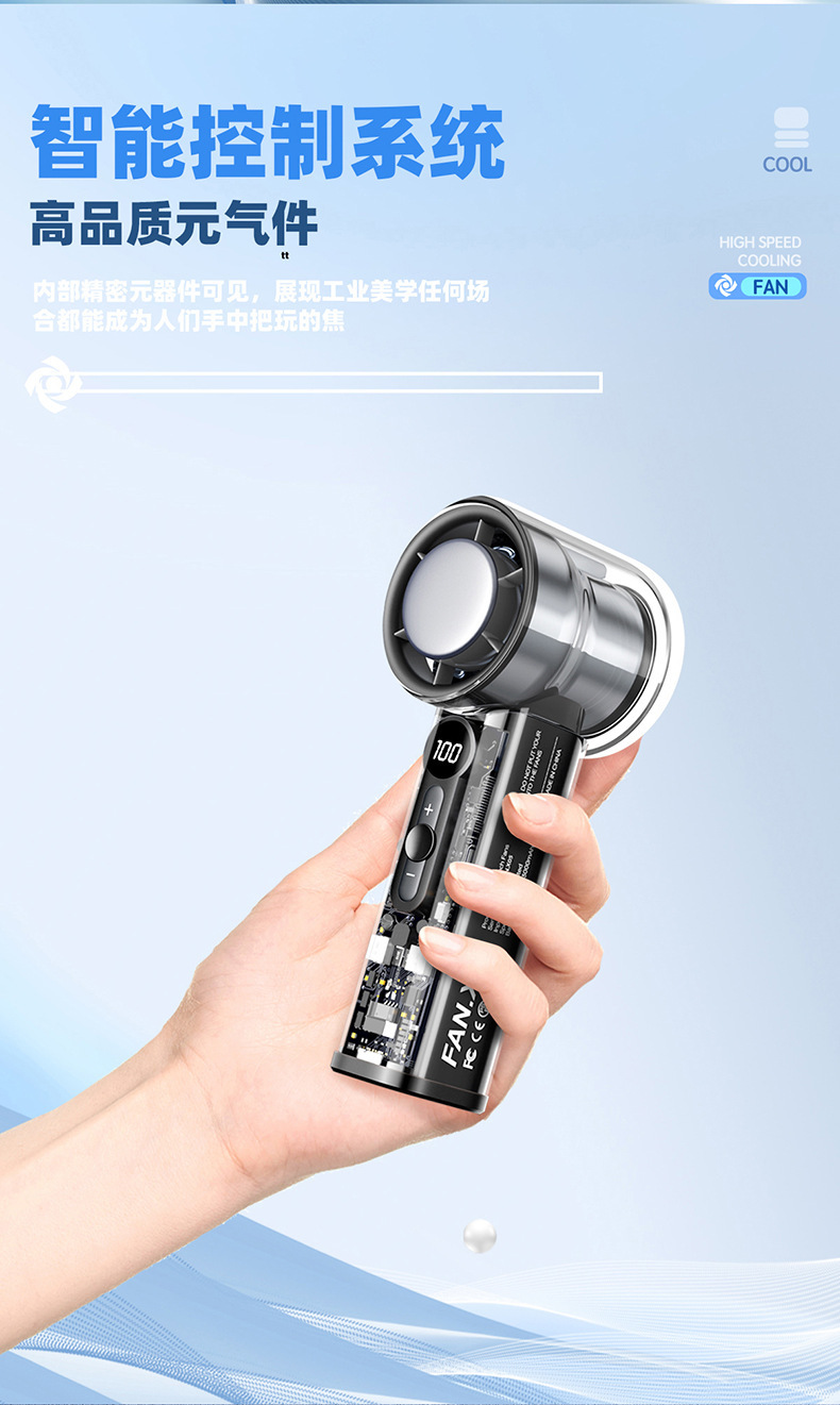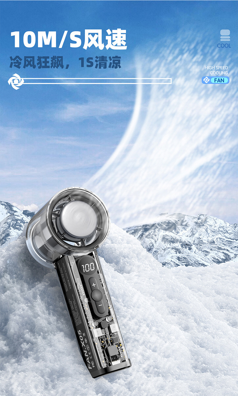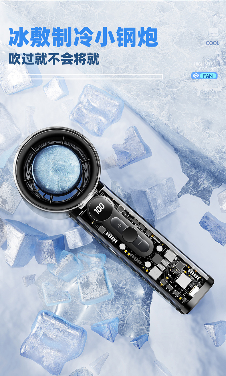 25年跨境新款高速制冷风扇便携涡轮手持风扇冰敷透明机甲小风扇