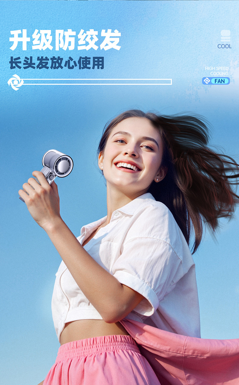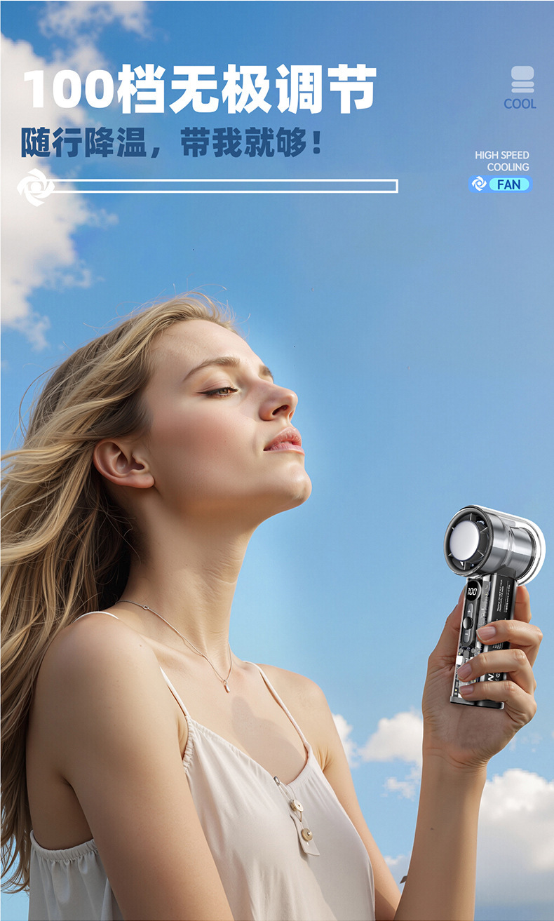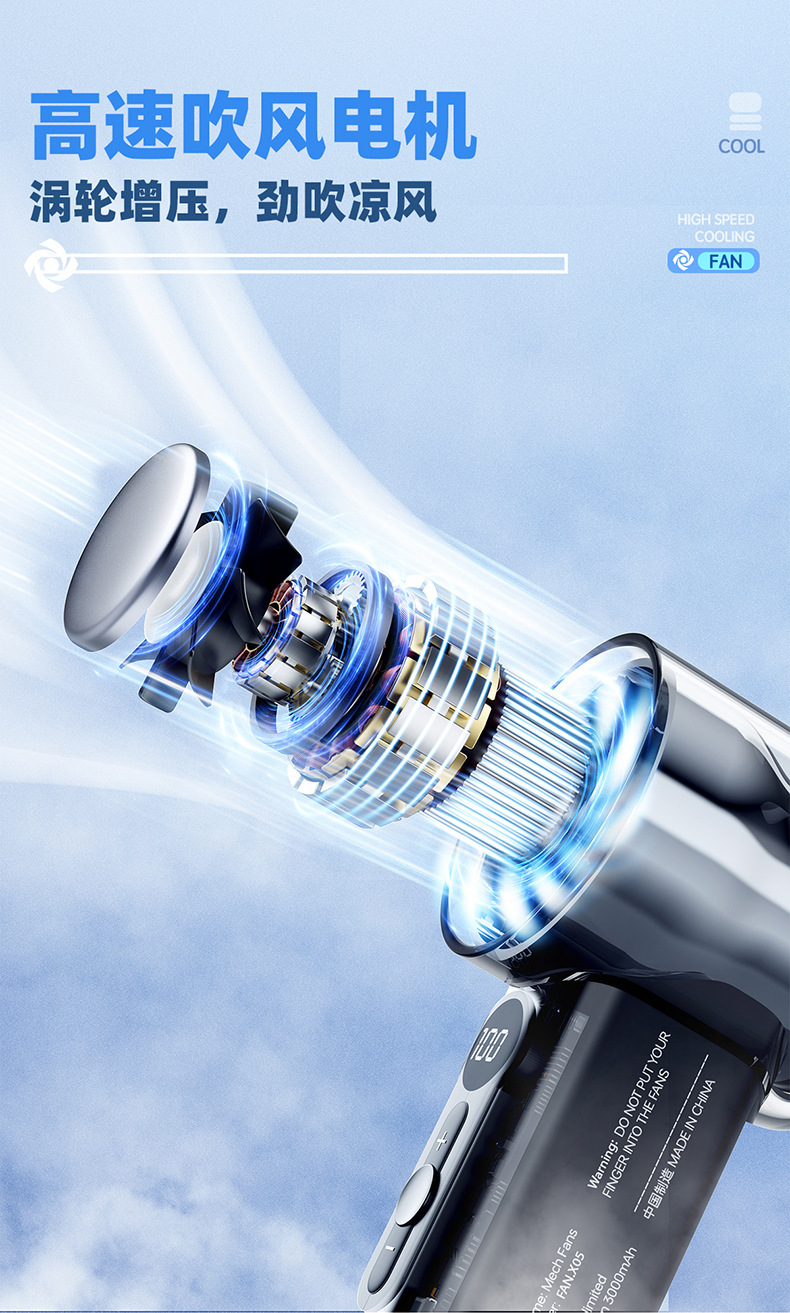 跨境新款充电涡轮制冷usb手持风扇数显便携式户外小型迷你小风扇