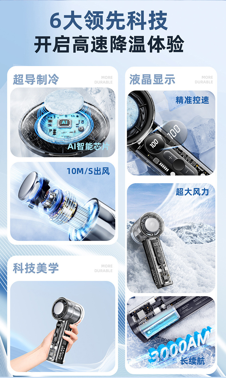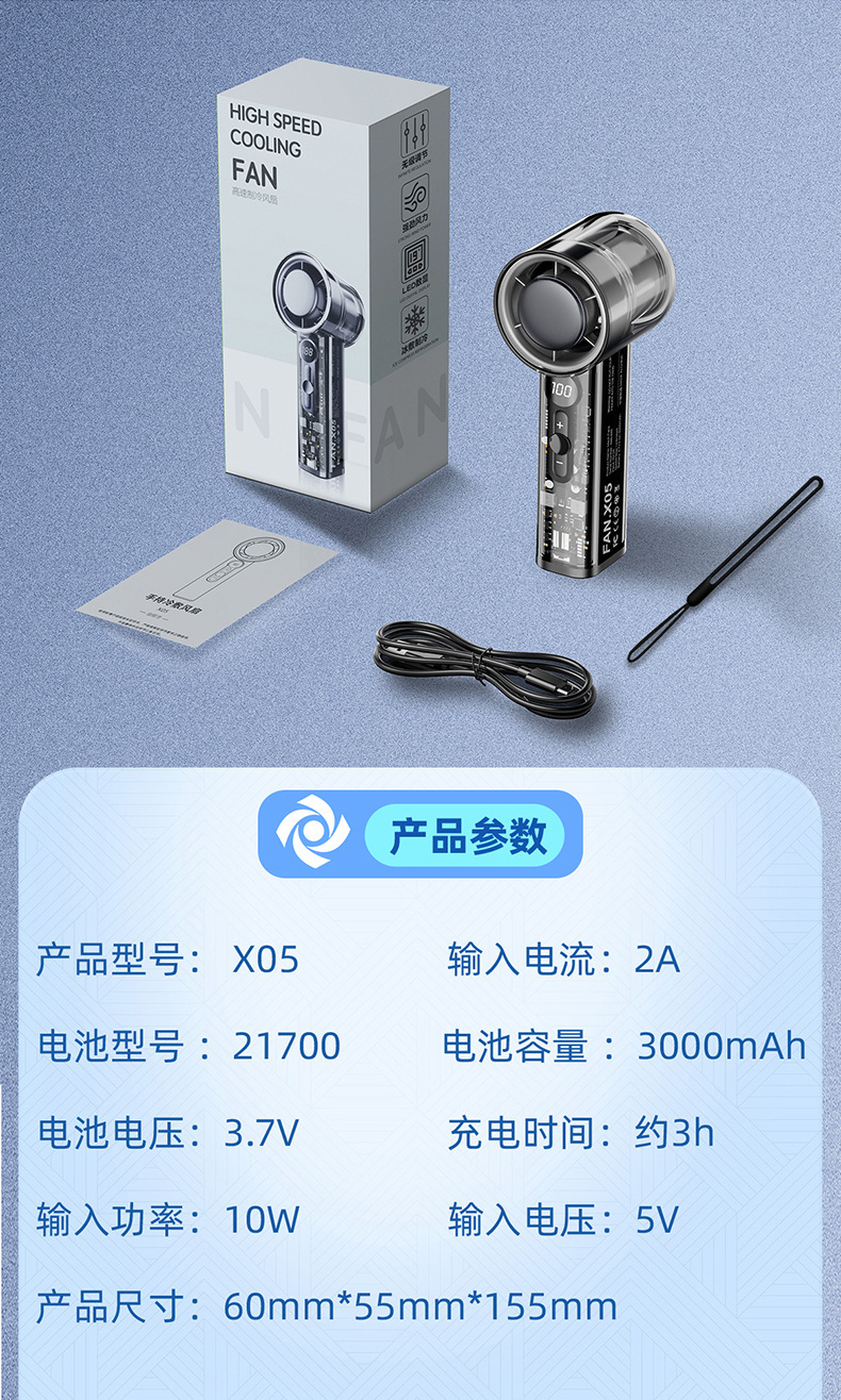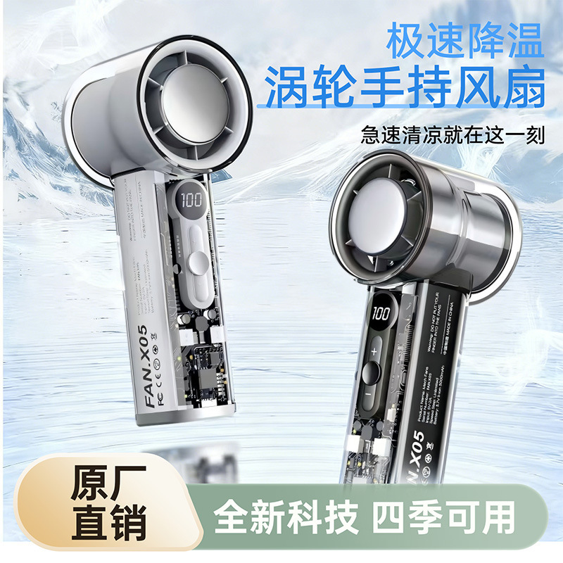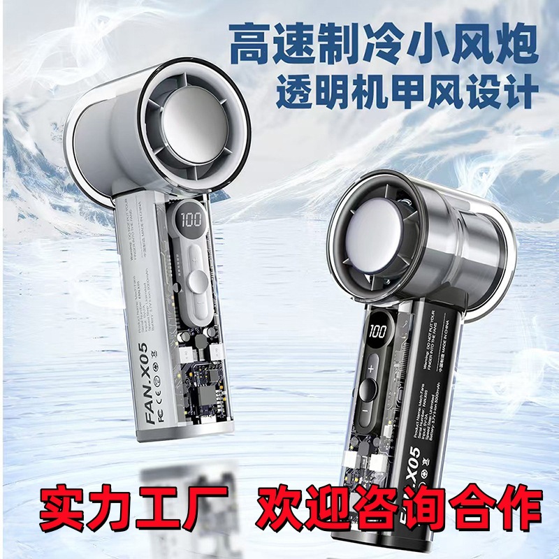 2025新款跨境爆款X05透明机甲高速风扇USB涡轮风扇手持半导体制冷