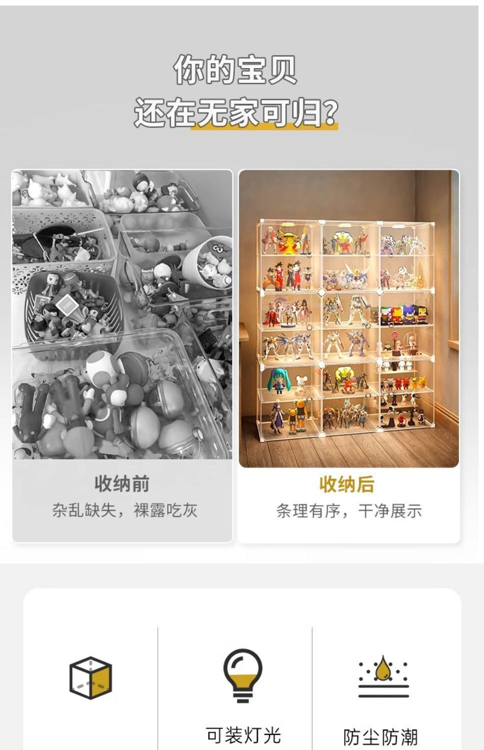 手办展示柜乐高积木透明收纳盒家用仿亚克力玩具防尘模型陈列架子