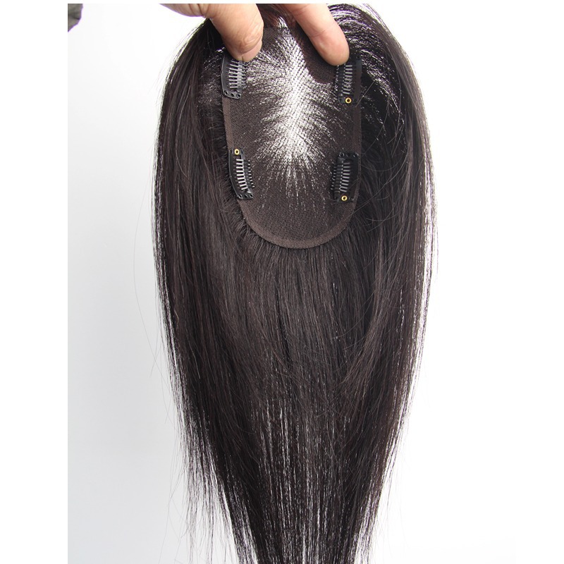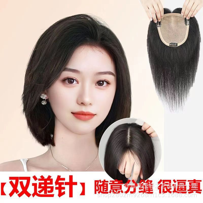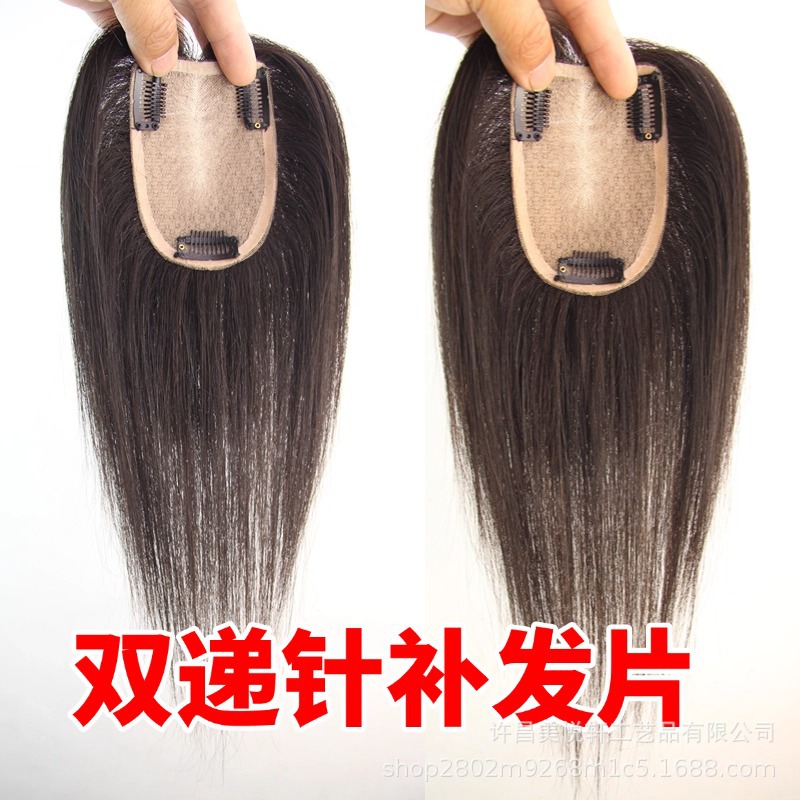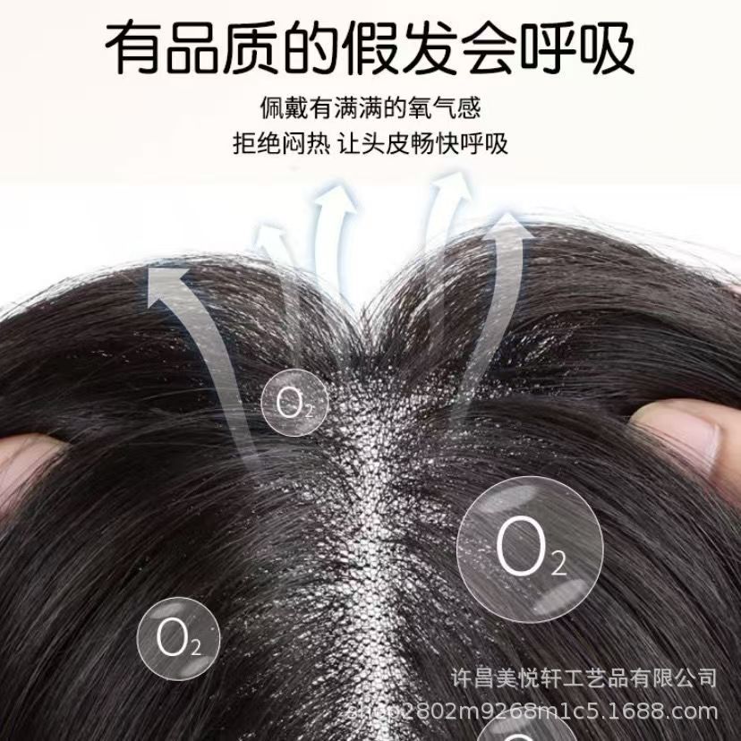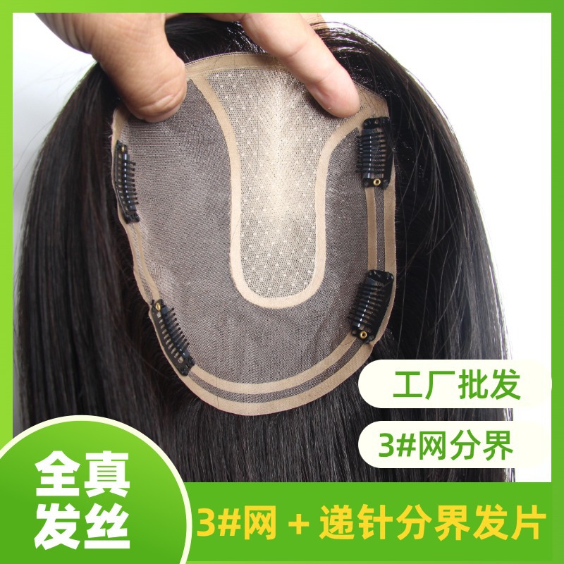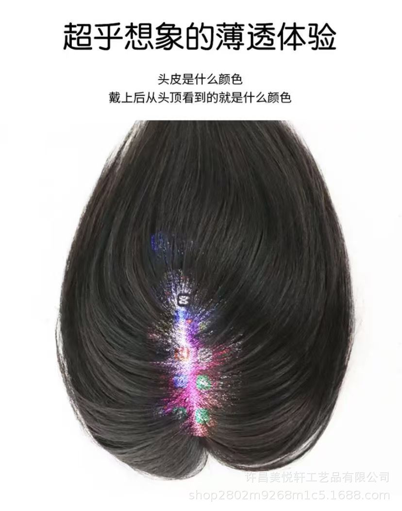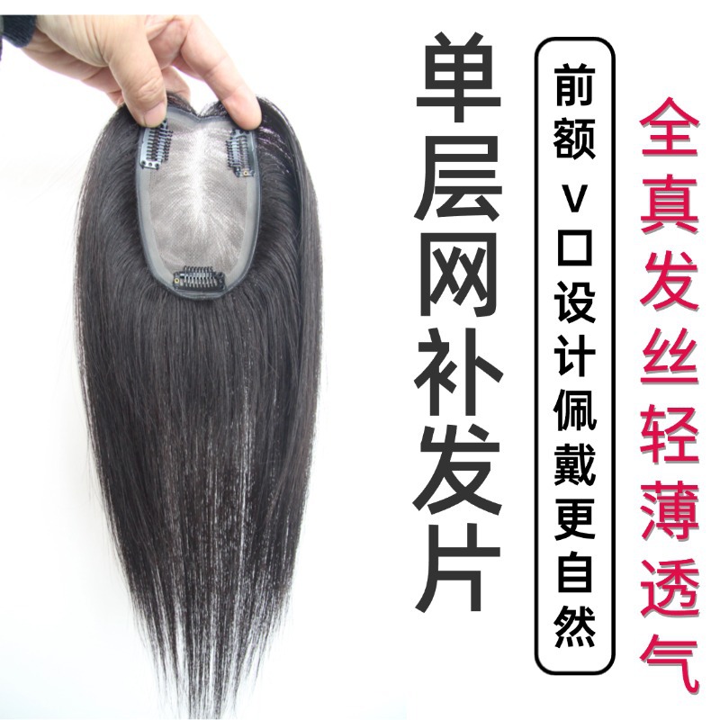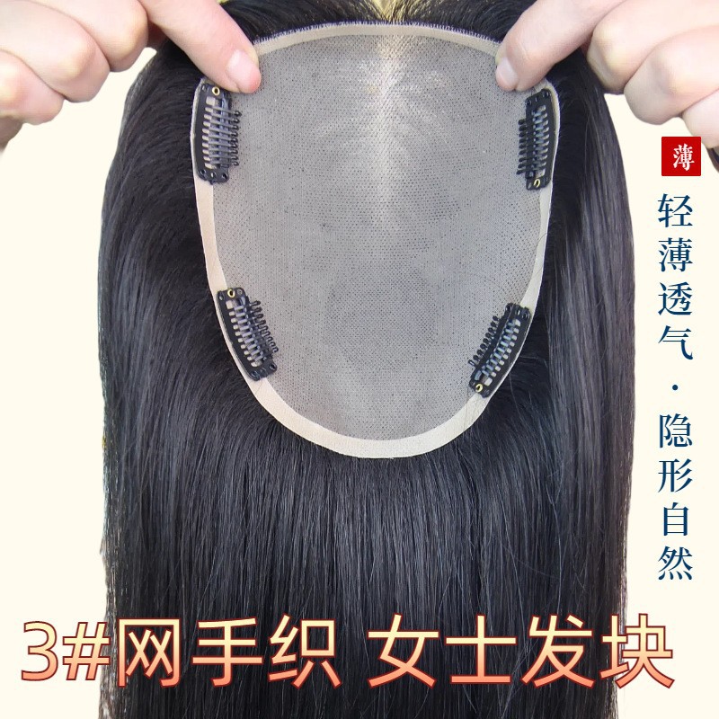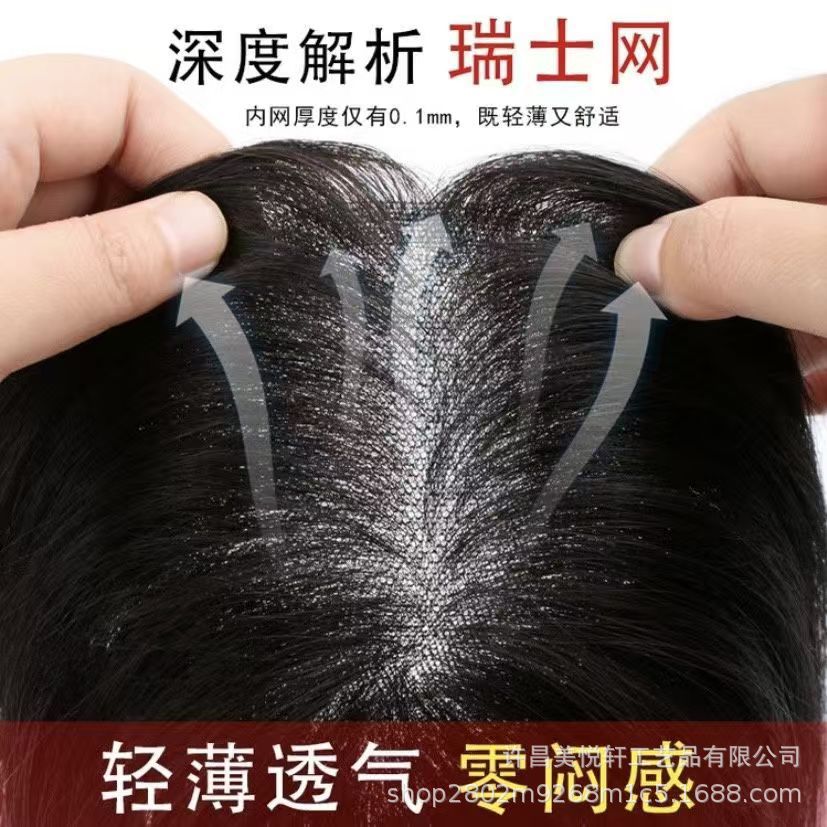 轻薄透气手织瑞士网补发块女士遮白发头顶假发片真发