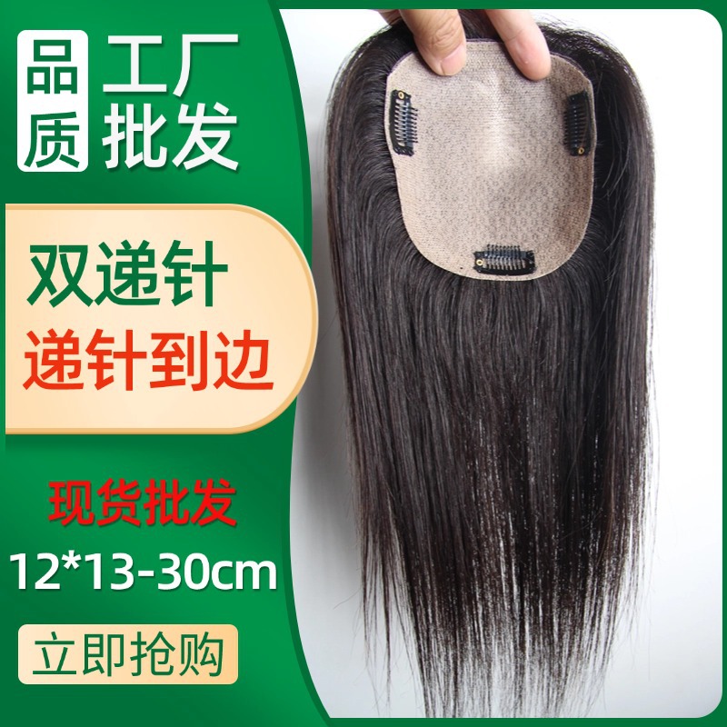 双递针女士补发片全真发手工钩织仿真头皮夏季透气舒适自然假发片