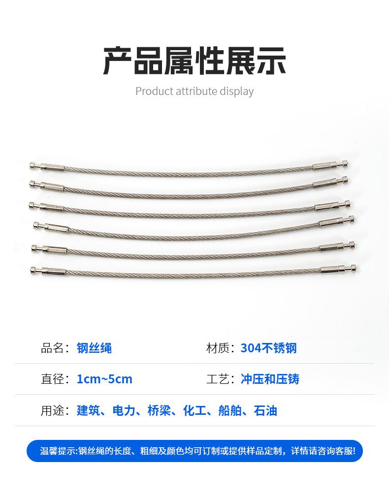 304ステンレス鋼安全落下防止ロープ、ツール用脱落防止ロープ、スチールワイヤーロープ、広告看板、照明器具、保険ロープ
