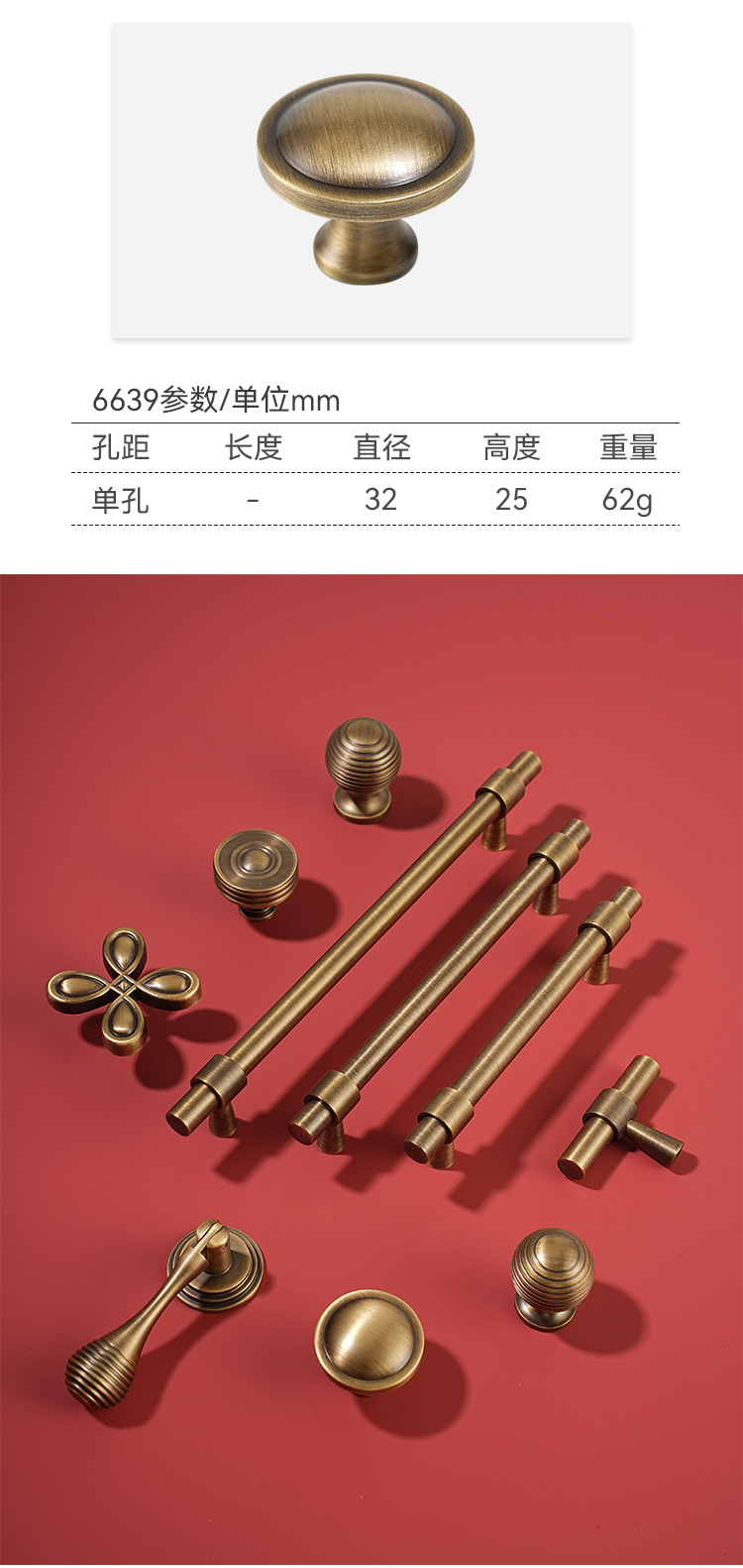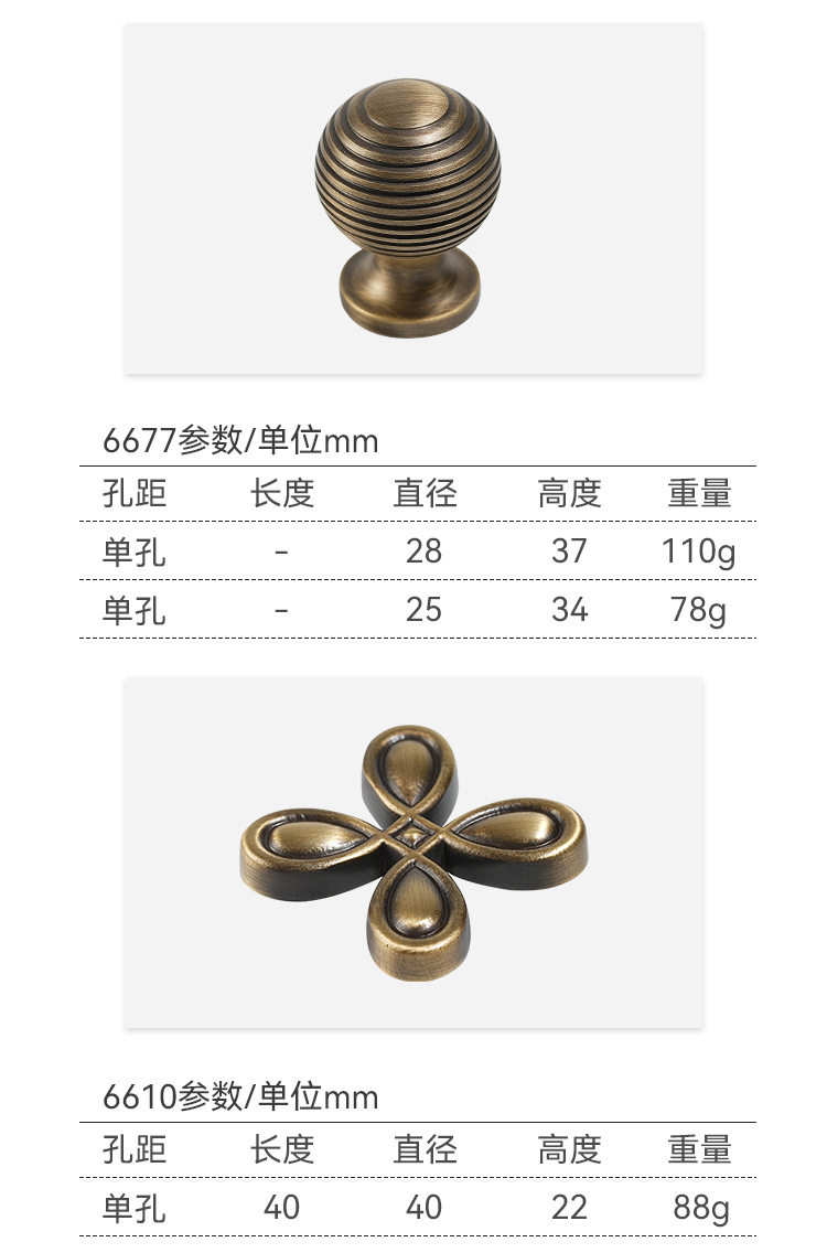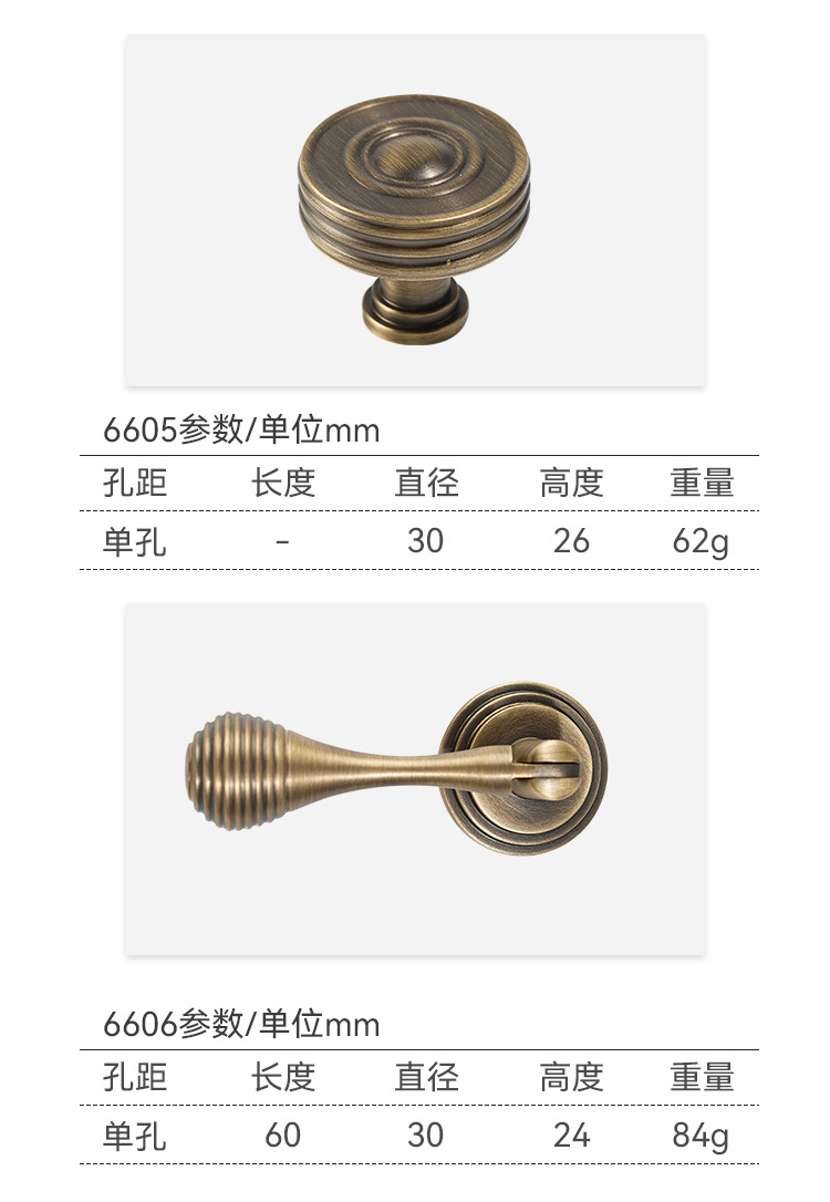 龍林五金 全真銅製 キッチンキャビネットドア アンティーク調単穴ハンドル レトロシンプル 純銅製引き出しハンドル 卸売