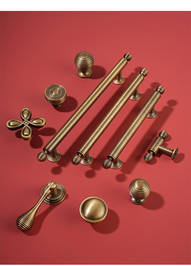 レトロなフレンチスタイルのワードローブ靴キャビネット純真鍮ハンドルブロンズ色の新しい中国風シングルおよびダブル穴表面実装全銅ハンドル