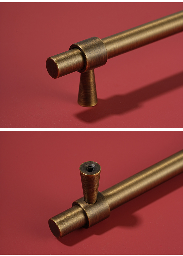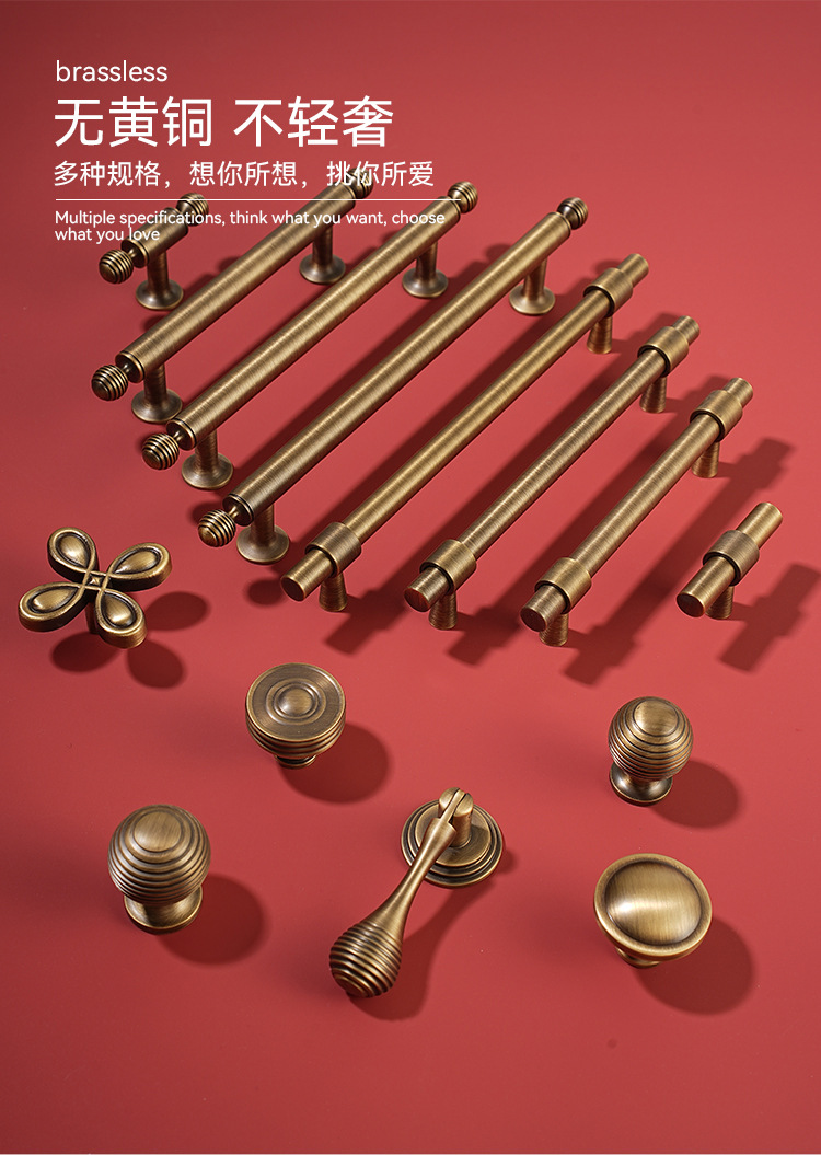 新中式真鍮無垢材、明暗装(明装・隠し装)兼用、アンティーク調銅色、家具金物、衣類・靴・キッチン用引き出し・キャビネットドアハンドル