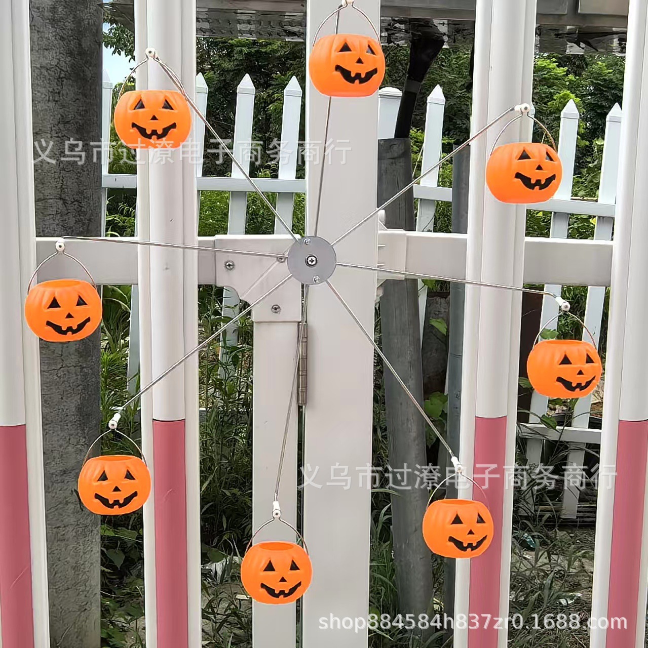 国境を越えた売れ筋 2025 屋外クリエイティブハロウィン回転カボチャスカルメタルバードフィーダー装飾