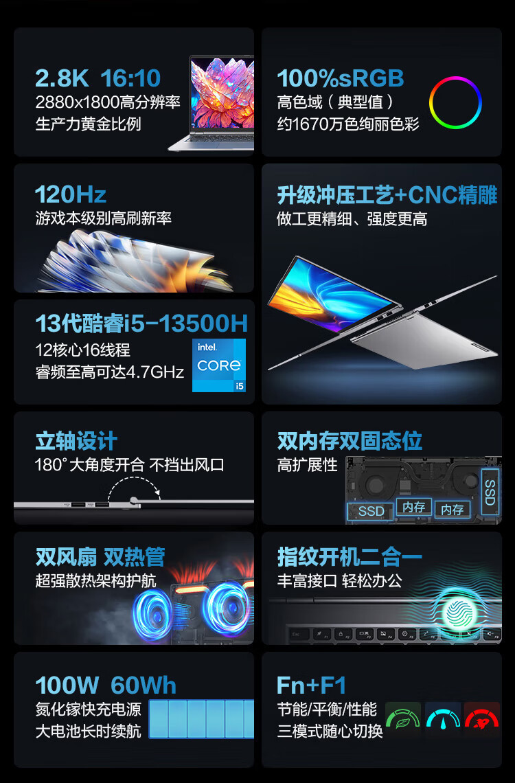 机械革命(MECHREVO)旷世16Pro 16英寸13代酷睿i5游戏本笔记本电脑