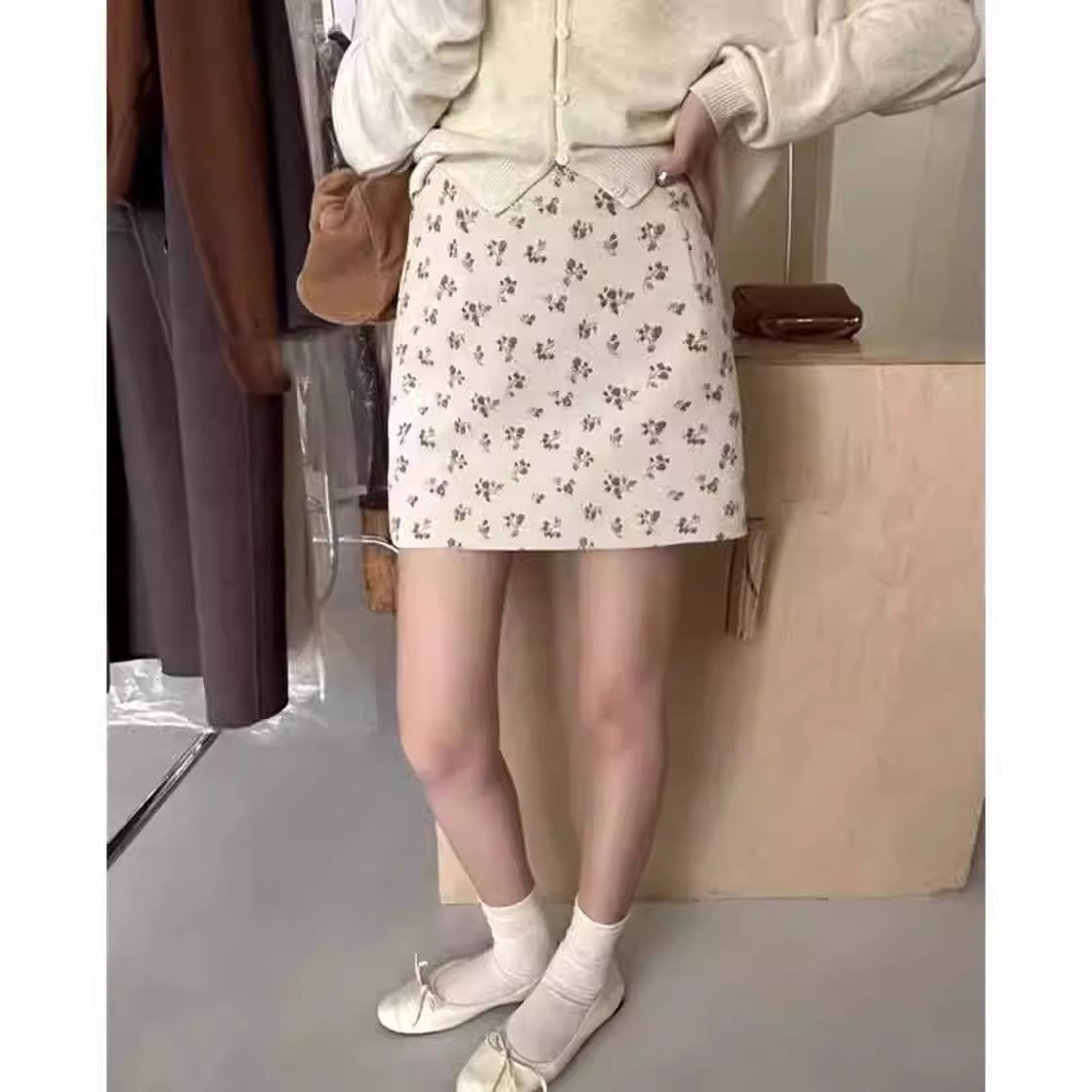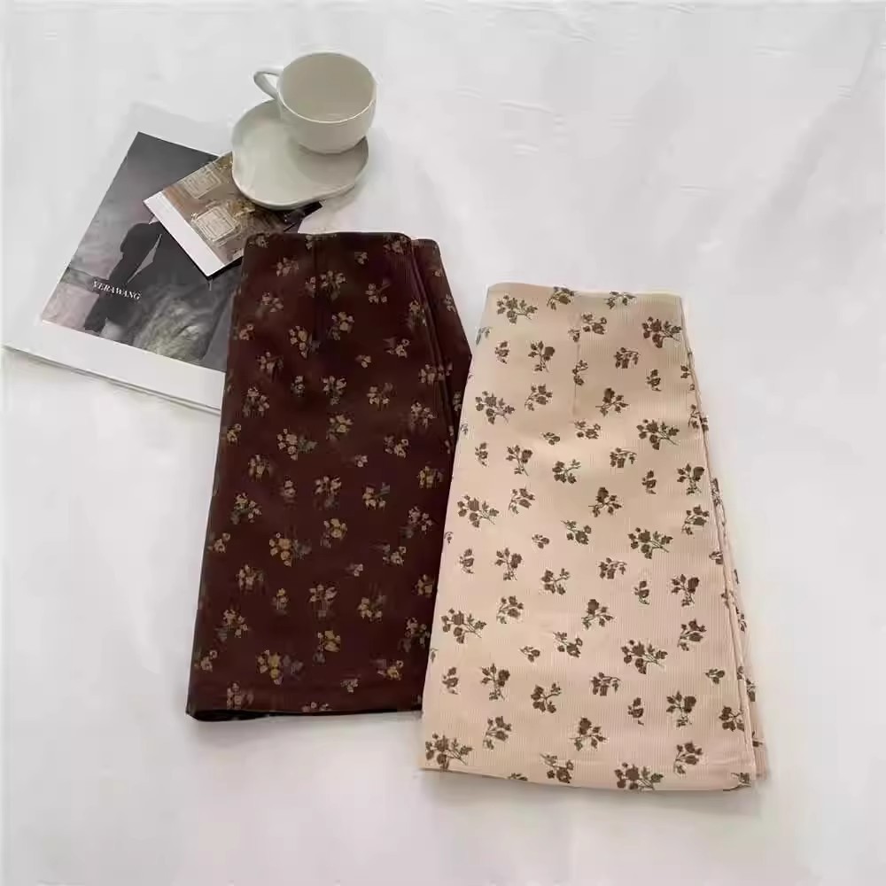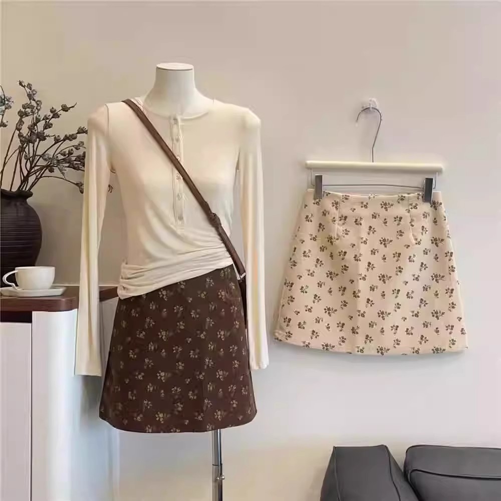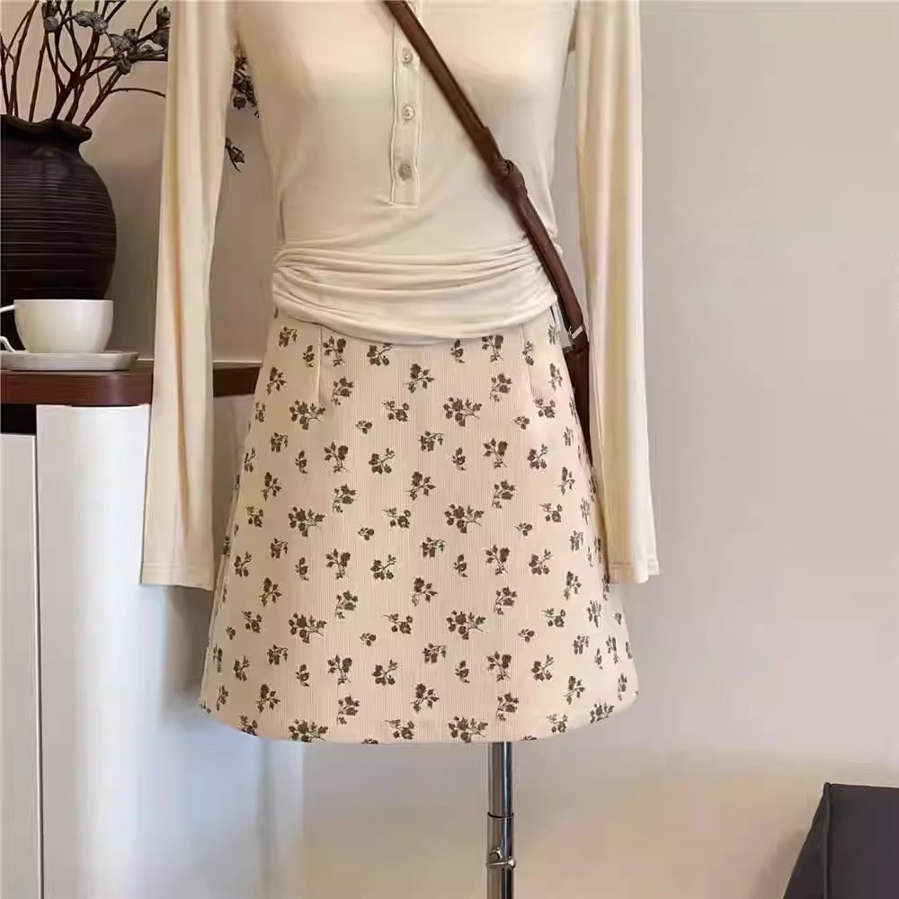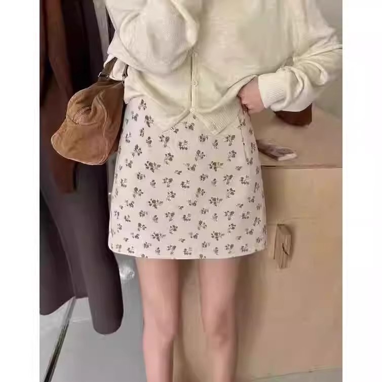 2025 秋冬花柄コーデュロイヒップカバーショートスカートレディースデザインハイウエストカジュアル A ライン多用途気質スカート
