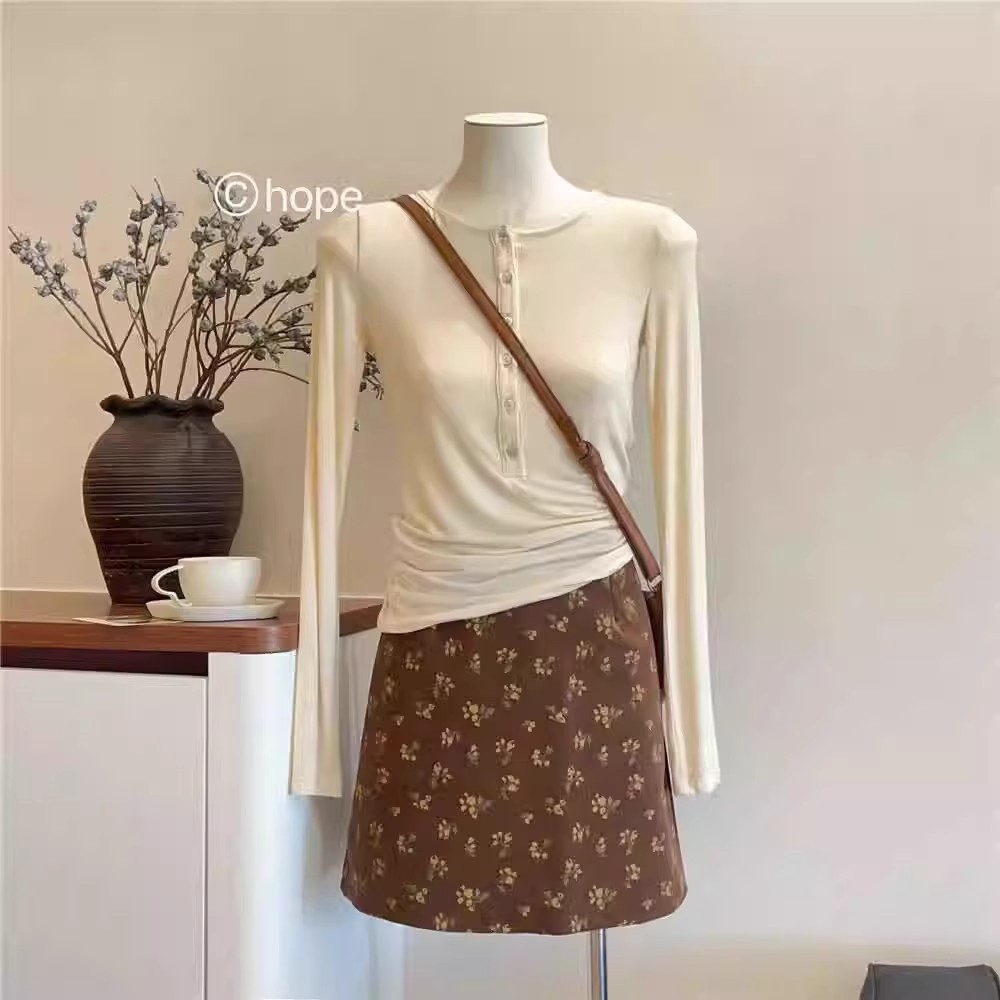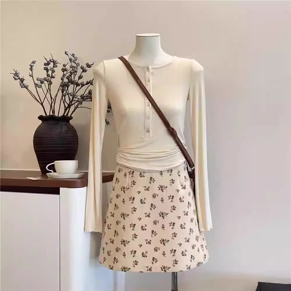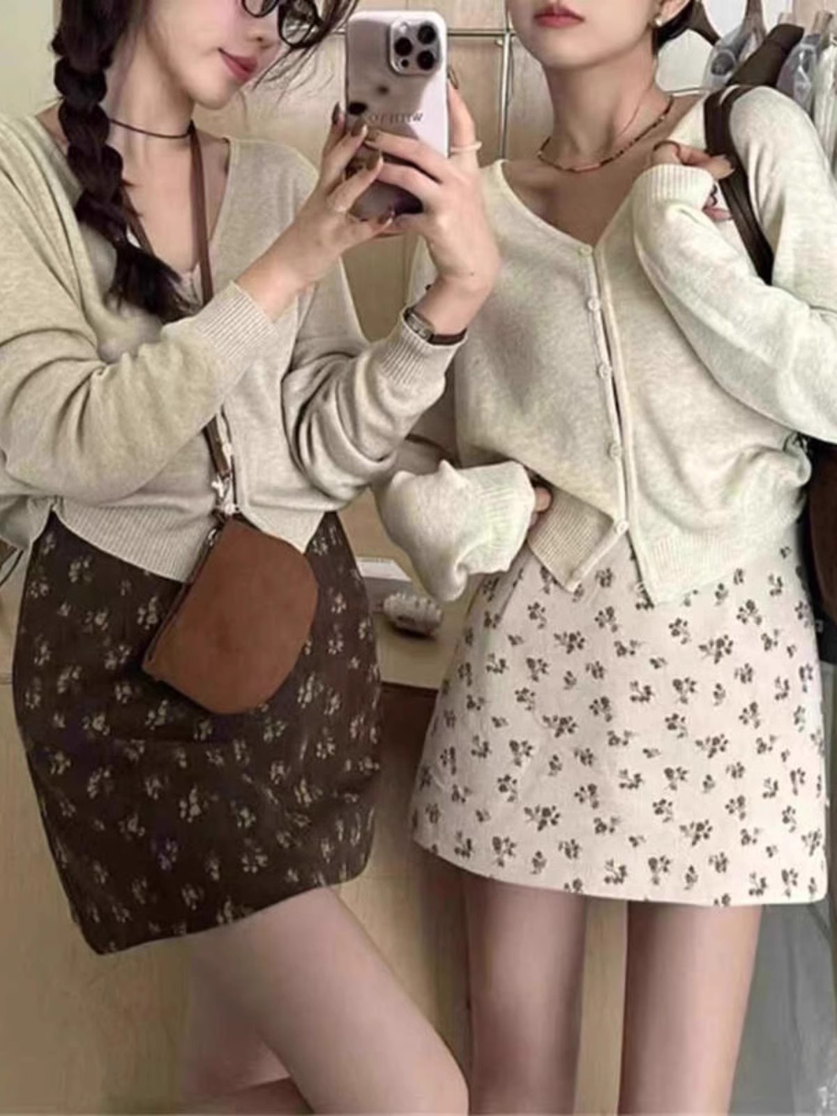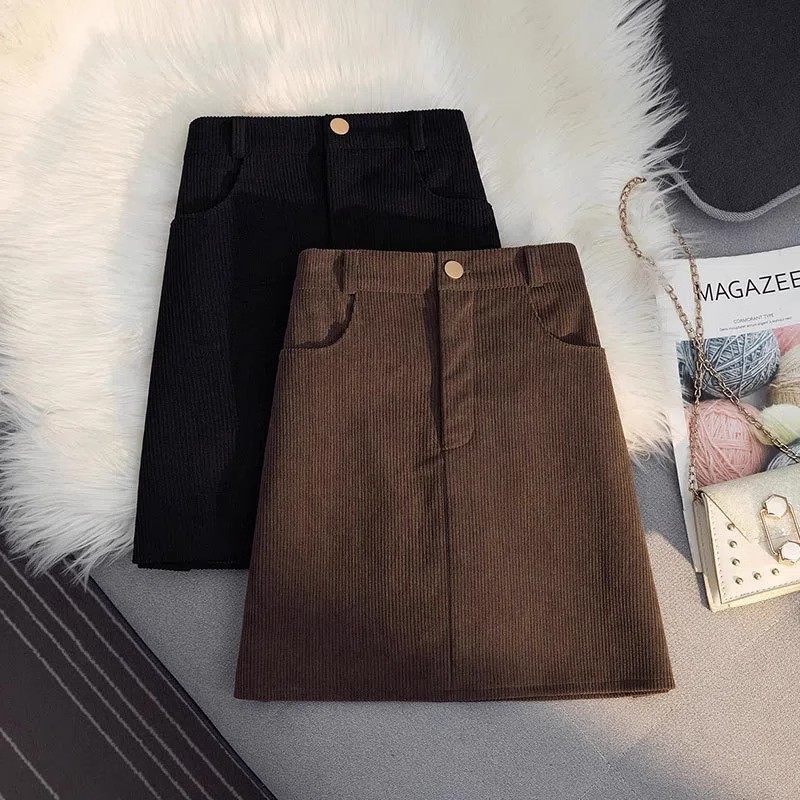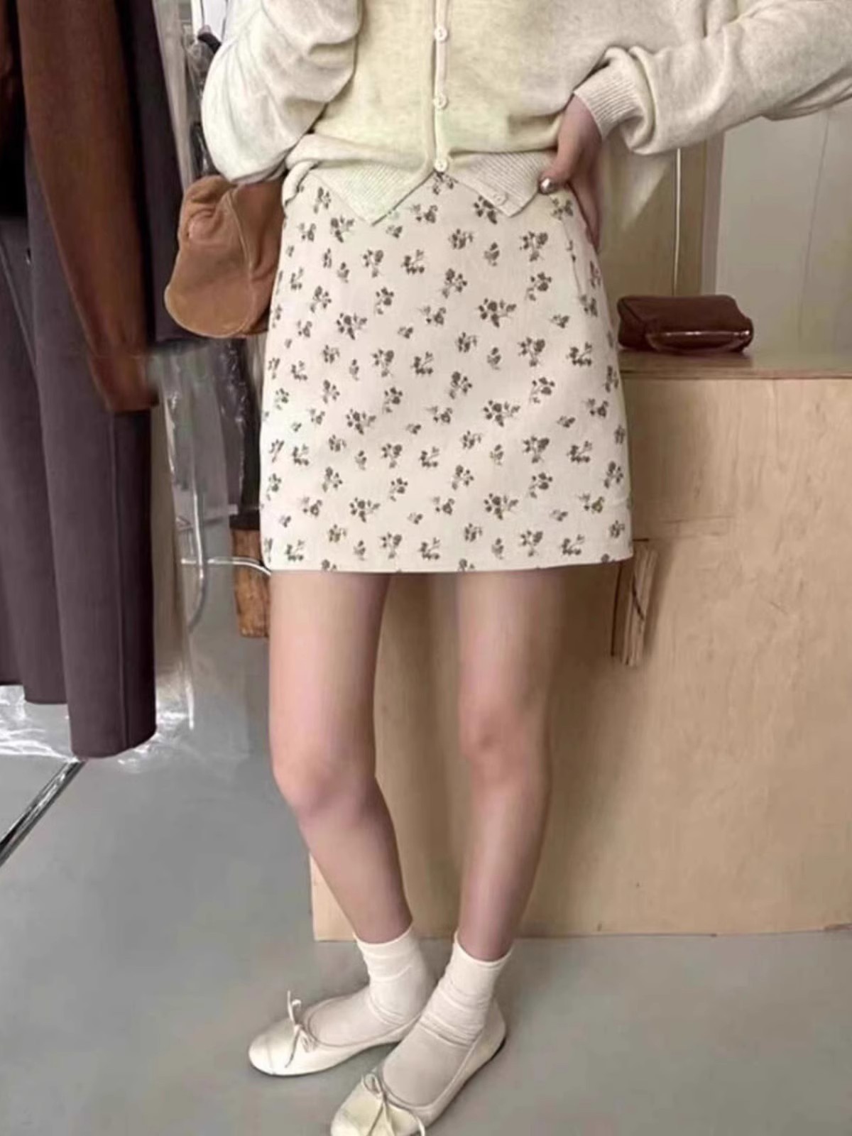 2025 秋冬花柄コーデュロイヒップカバーショートスカートレディースデザインハイウエストカジュアル A ライン多用途気質スカート