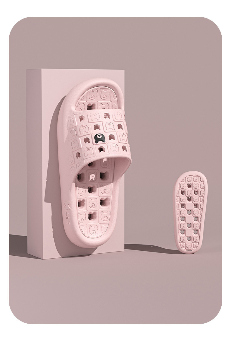 リトルベアバスルームスリッパ女性用オールシーズン2025新しい屋内ホーム中空速乾性滑り止めカップルスリッパ男性用