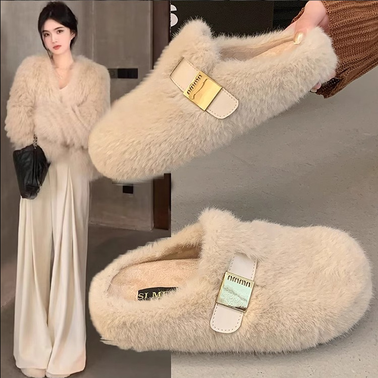 一脚蹬厚底增高毛毛拖鞋女外穿2025新款秋冬高级感毛绒包头棉拖鞋
